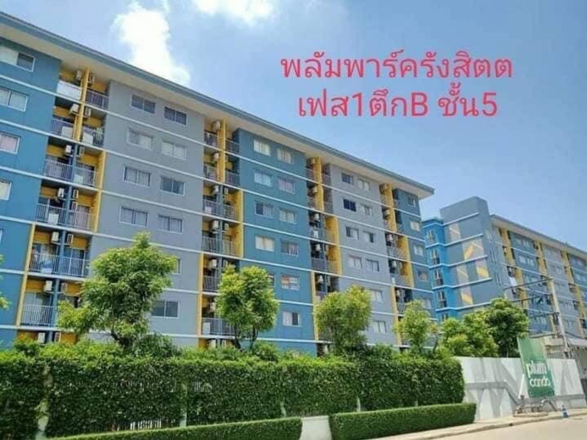 Condo for rent, Plum Park Rangsit, price only 8,000฿, this price includes signing a contract or making a reservation, Phase 1, Building B, 5th floor, view of Bangkok University, complete furniture, complete electrical appliances, washing machine included.