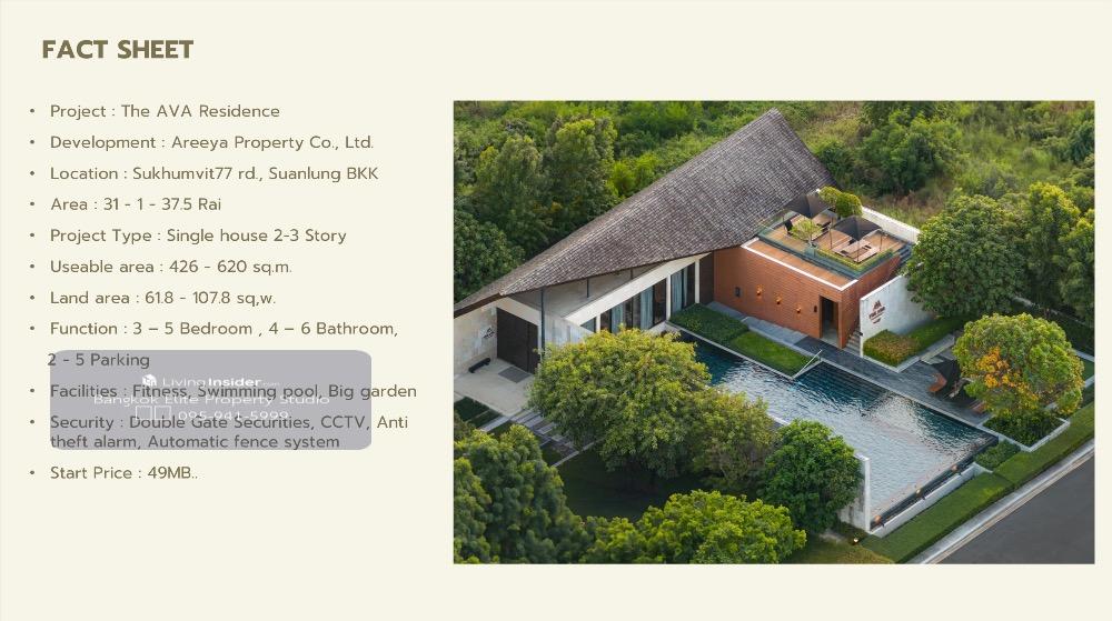 𝐓𝐡𝐞 𝐀𝐕𝐀 𝐑𝐞𝐬𝐢𝐝𝐞𝐧𝐜𝐞 🔥🔥 𝙁𝙊𝙍 𝙎𝘼𝙇𝙀 : 𝐓𝐡𝐞 𝐀𝐕𝐀 𝐑𝐞𝐬𝐢𝐝𝐞𝐧𝐜𝐞, 𝐓𝐲𝐩𝐞 𝐋𝐚 𝐕𝐢𝐞 𝐥𝐥, 𝟔𝟏.𝟖 𝐬𝐪. 𝐰., 𝟒𝟔𝟐 𝐬𝐪.𝐦. , 3 Bedroom l 4 Bathroom 3 Porch 45 S Contact Khun Nat Contact number 🏛️ For Sale 🏛️ Buy directly from the project 🏛️ 3 Bedroom l 4 Bathroom 🏛️ 3 Parking 🏛️ Land Area 61.8 Sq.wah. 🏛️ Usable Area 462 sq.m. 🏛️ Type La Vie ll 🔥🔥 Start Price 𝟒𝟓,𝟎𝟎𝟎,𝟎𝟎𝟎 🔥🔥 —— 𝐓𝐡𝐞 𝐀𝐕𝐀 𝐑𝐞𝐬𝐢𝐝𝐞𝐧𝐜𝐞 - Single House Main Sukhumvit 77 Road Type La Vie II = 45 MB Type La ViTA = 65 MB Type La ViTa ( Show Unit ) =67 MB —— 🚀💥 For Nat customers, there is a special deal. Ready to buy directly from the project. 💥🚀 __________________________ Contact us for registration and inquiries at / Register&Contact us via : ⬇️⬇️ ☎️ Tel./Whatsapp. : Contact number (Sale Nut) 📲 ADD Line ▶️ https ://line.me/ti/p/i9pi1FawhR 📥 E-mail : Contact email ✍️ Visit Our Facebook : Bangkok ELITE Property Studio 🛡️ Visit Our Instagrams : Bangkok ELITE Property Studio ♟️ Visit Our Threads : Bangkok ELITE Property Studio ☄️ Visit Our TikTok : Bangkok ELITE Property Studio *** Accepting consignment sales/rentals of all types of real estate *** Accepting consignment sales/rentals of all types of real estate Do Baan Townhouse in Bangkok and its vicinity etc. 𝙋𝙧𝙤𝙥𝙚𝙧𝙩𝙮 𝘾𝙤𝙣𝙨𝙪𝙡𝙩𝙖𝙣𝙩 𝘽𝘼𝙉𝙂𝙆𝙊𝙆𝘾𝙄𝙏𝙄𝙎𝙈𝘼𝙍𝙏