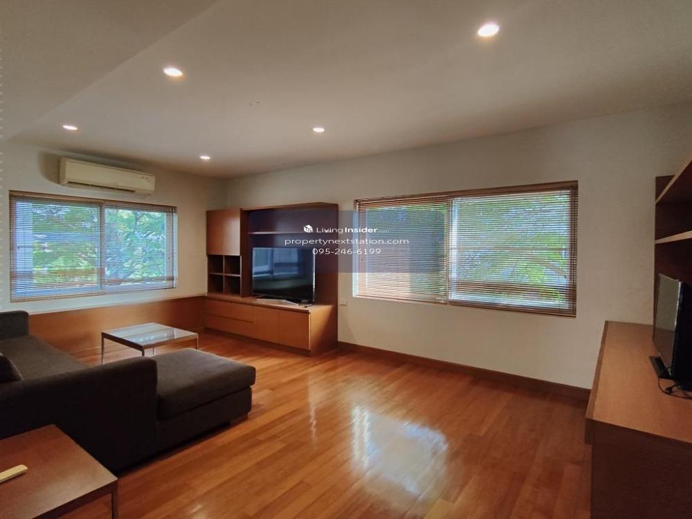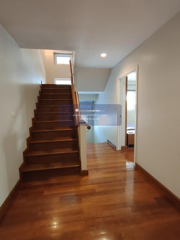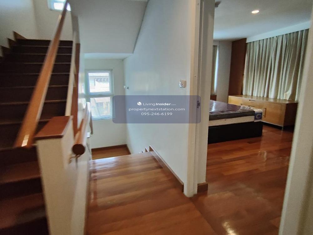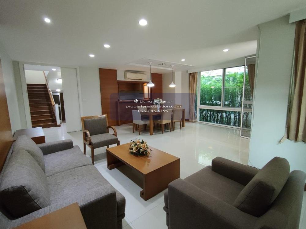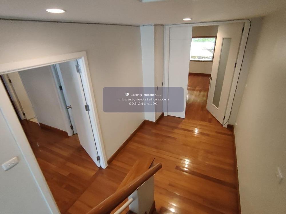 Semi-detached house for rent, suitable for living, 3 floors, split levels, 4 bedrooms, 2 living rooms, 4 bathrooms, 1 kitchen, maid's room, 1 parking space, communal swimming pool Ekkamai Soi, about 10 minutes walk to Thonglor or Chan Issara Tower, Petchburi New Road www.propertynextstation.com Call/ Line/ WhatsApp: Contact number