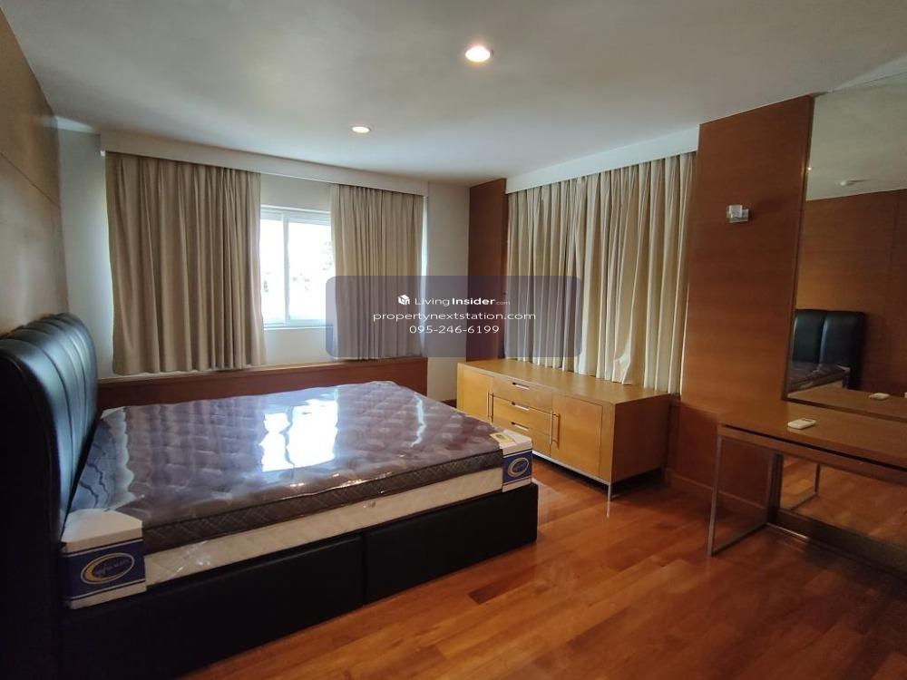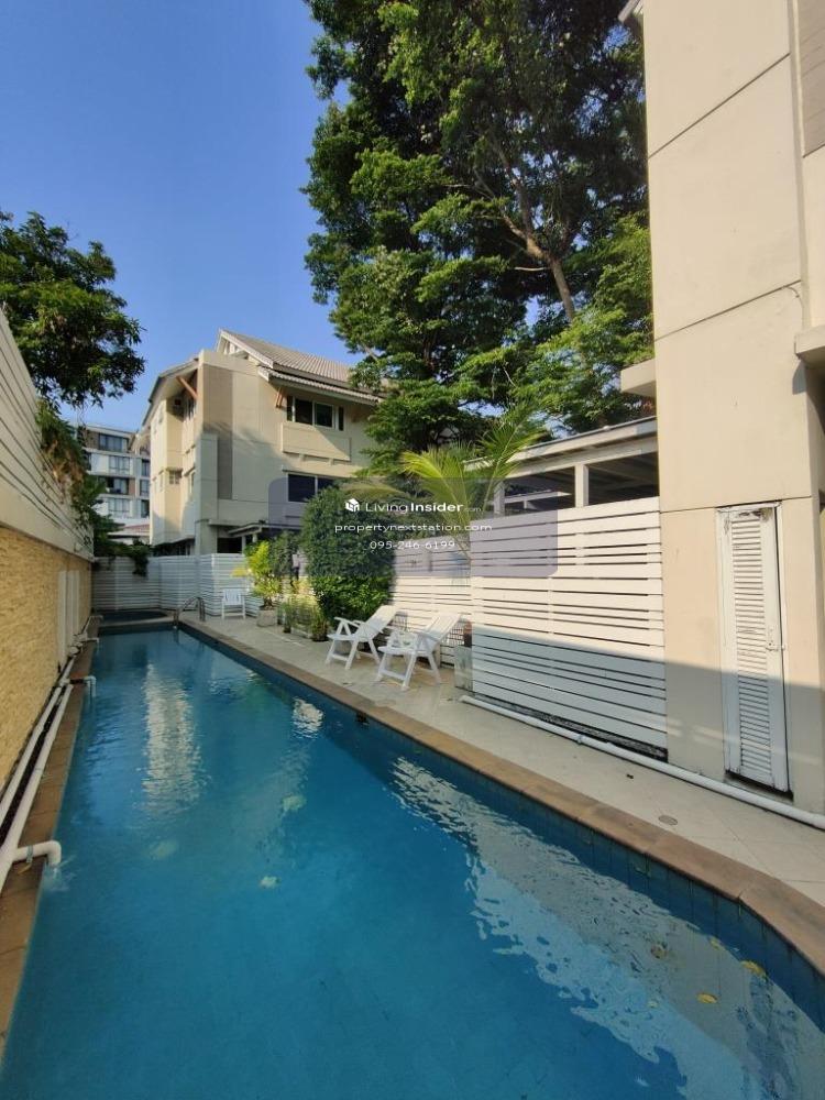 For rent, 3-storey twin house in a private project, 4 bedrooms, swimming pool, common area, Ekkamai Soi, about 10 minutes walk to Thonglor or Chan Issara Tower, Petchburi New Road