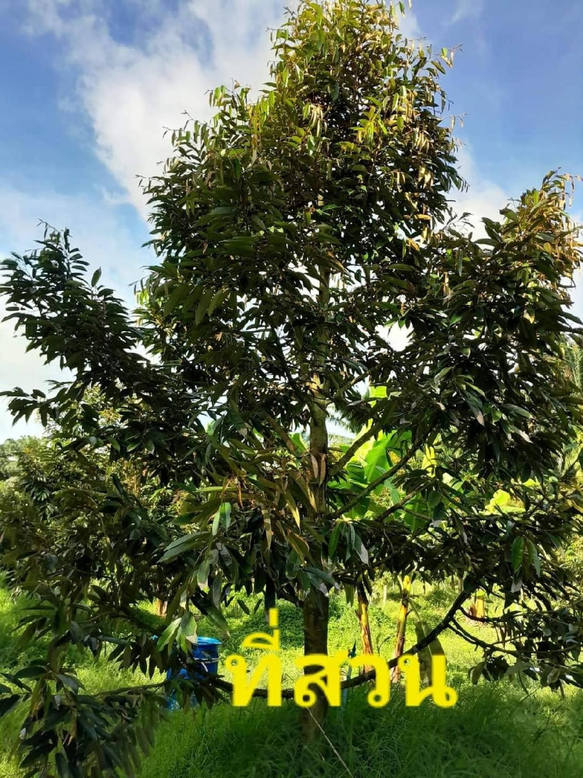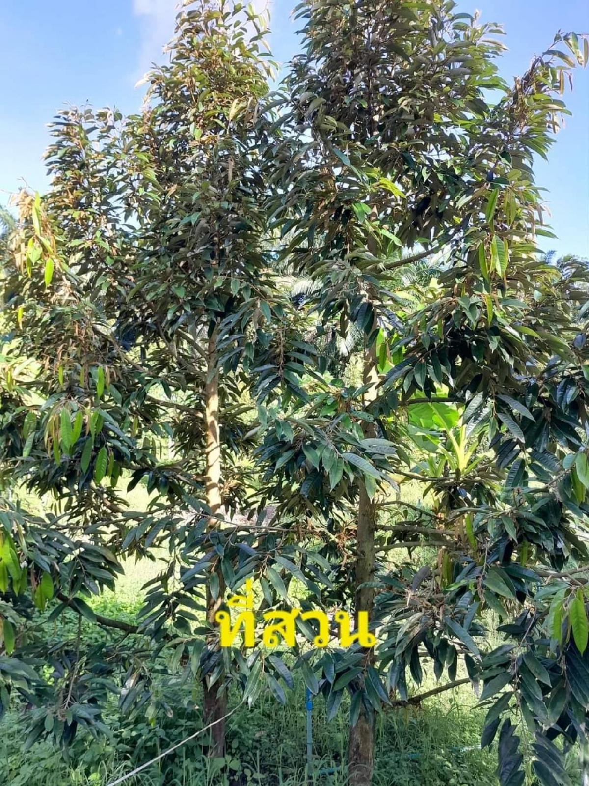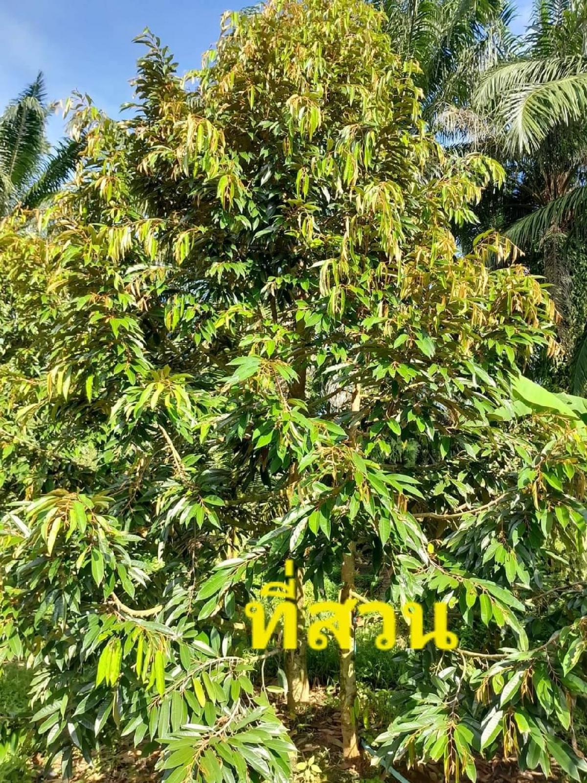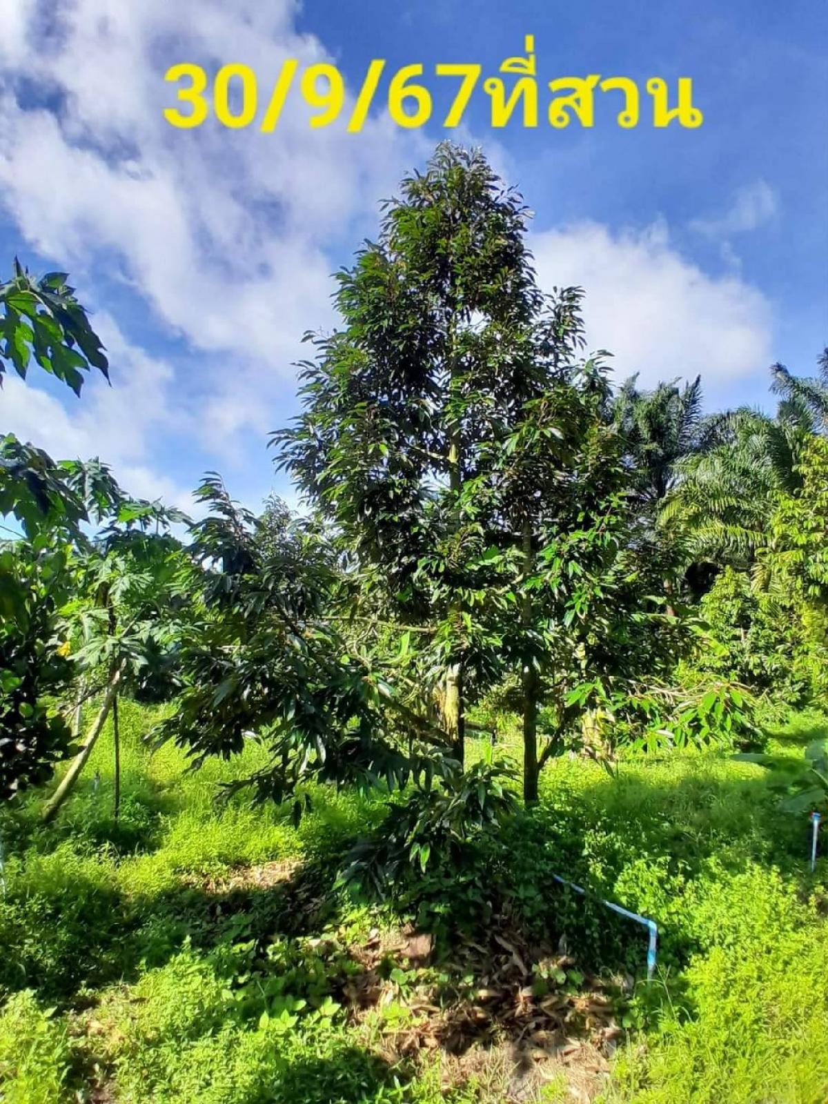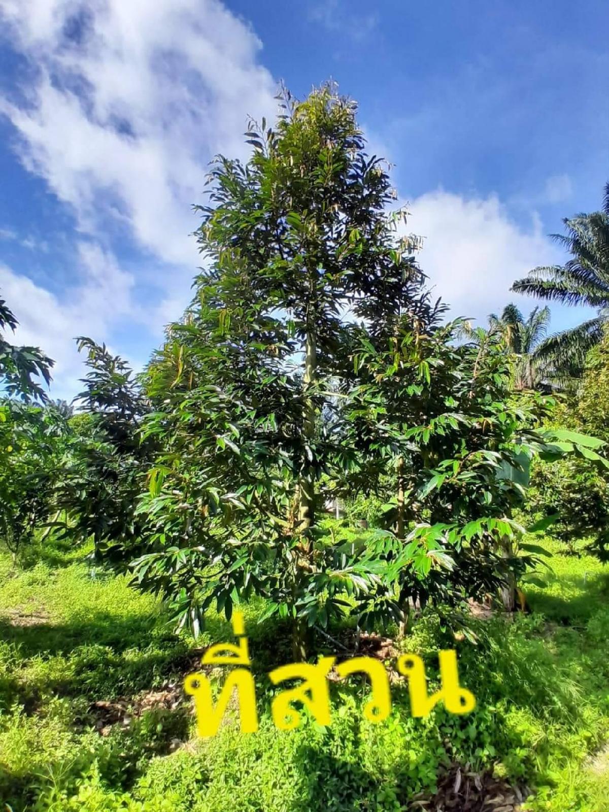 Area 4 rai, public road on 2 sides, front-back house only 2 million up coordinates Wat Yang Kho, Tha Sae 5 km from the district pond used for growing durian for watering 1 pond house area 200 sq m. the rest is grown with durian 120 durian trees, Mon Thong variety house just built 1 year ago, 3 bedrooms