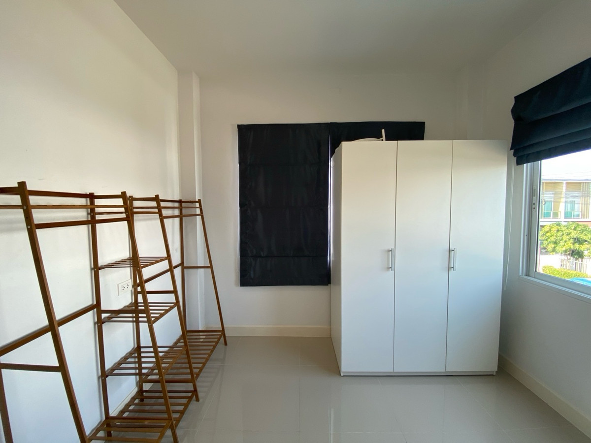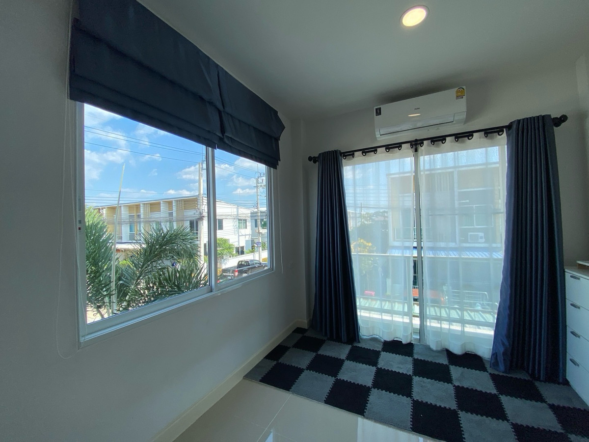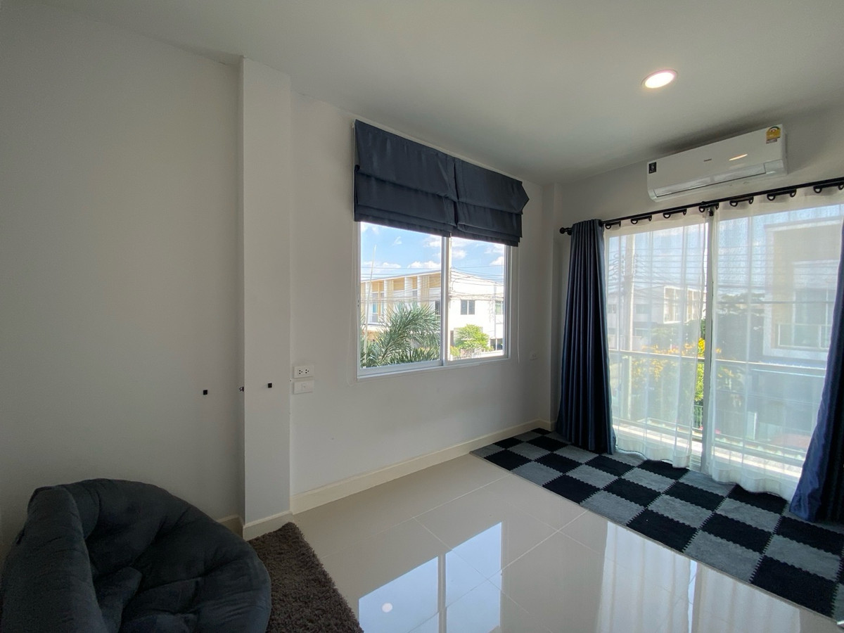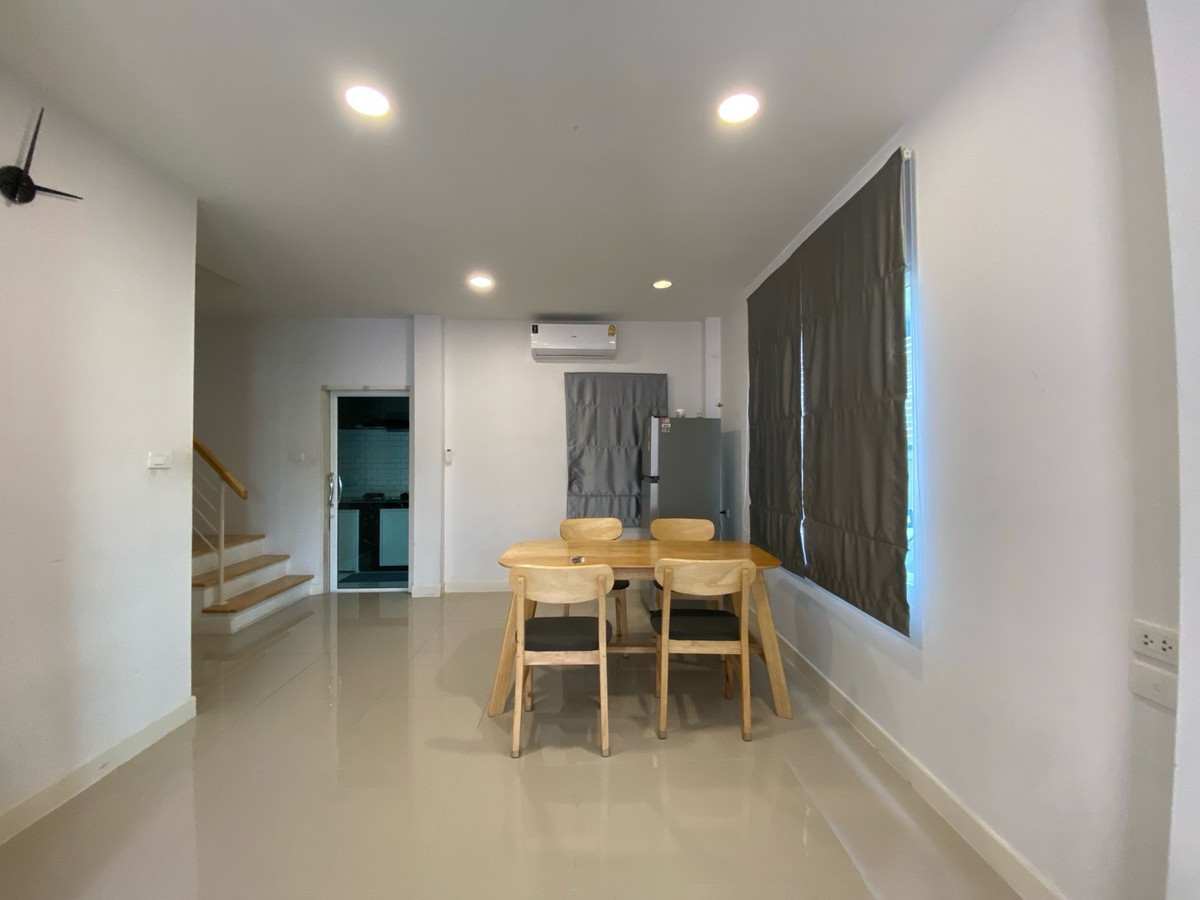 En: Something like this doesnt come around often House for rent near Westgate, fully furnished, corner house, good condition, free Wi-Fi, pets allowed BTN Residence 2 Soi Chan Thong Iam, 2-storey townhome, only 3 years old 🔎Details -3 bedrooms, 2 bathrooms -1 parking space in the house (can park beside the house on the main road) -Corner house 24.5 sq.w. -Usable area 79 sq.m. -Extend the garage and kitchen very well -Front of the house faces southeast ❤️Furniture and appliances Sofa, TV shelf, dining table, bed, mattress, wardrobe, work desk and chairs, curtains throughout the house, mosquito nets, 3 air conditioners (1 downstairs, 2 upstairs), water heater, refrigerator, water pump, water tank, gas stove, range hood ⭐️Dogs allowed Cats get ⭐️Free WiFi (True) 🪄Rental price 15,000 baht/month, including common fees Minimum 1 year lease First move in = 1 month advance rent, 2 months deposit Pay 45,000 and you can move in ✅️Facilities Clubhouse Swimming pool Fitness 24-hour security 🔺️Nearby places Central Westgate Ikea Bang Yai MRT Bang Phlu Station Thirat Market (Chan Thong Iam Road) Kasinthon St. Peter School Kesomras International Hospital, Rattanathibet Krungthai Western Hospital 📍Coordinates https://maps.app.goo.gl/2a8EtF1kRMtTM196A?g_st=com.google.maps.preview.copy Contact us to make an appointment to view the house 💓 Hun (Agent)📱 Contact number 💓 Deeya (Agent) 📱 Contact number