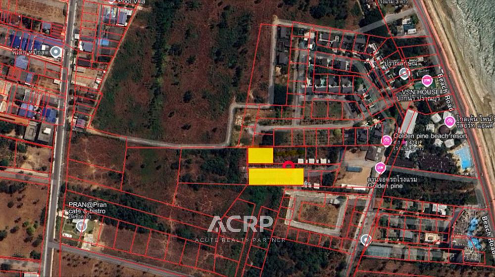 Great opportunity! Land for sale—3 plots, totaling 1 rai and 2015.20 Sq.m. Prime location, just steps away from the beach at Pak Nam Pranburi, surrounded by many tourist attractions. Perfect for build