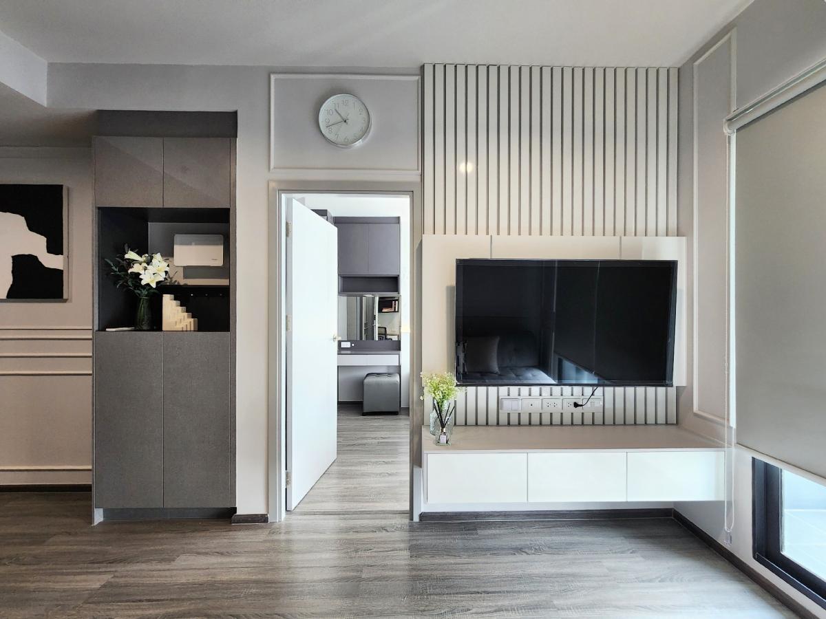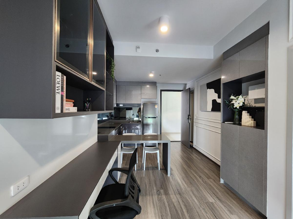 For rent 🍀 IDO Chula- Sam Yan Project 🏢 The RARE corner room (1 floor is only 1 room). The built-in is beautiful, full of furniture ✨️ - Air - Refrigerator ?)- Lamp - Smart TV - Microwave - Washing ma