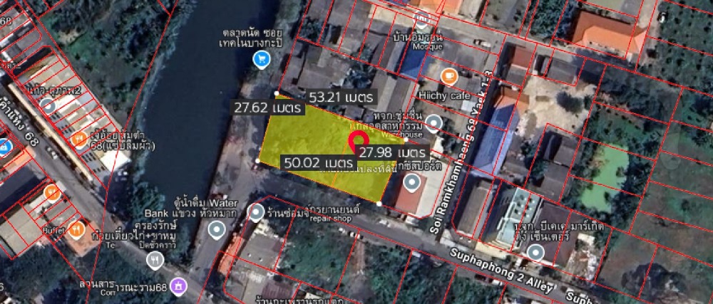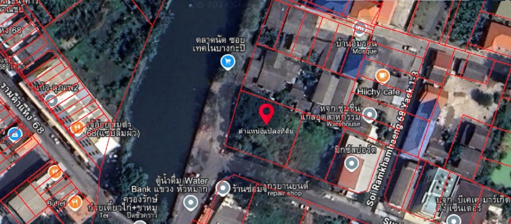 Land for sale, 369 sq m, Hua Mak, Bang Kapi, Ramkhamhaeng 68 Land for sale, filled in Located in Soi Ramkhamhaeng 68 Corner plot of land, next to Supaphong 2 Road, next to the canal Land size 369 sq m