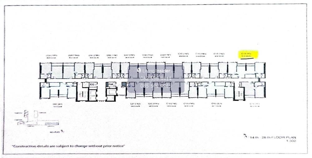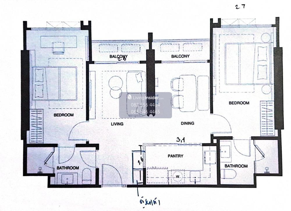 Condo No. : 22C13 Located on Floor : 22 Usable area : 70.20 sq.m. Room type 2 Bedroom (2 bedrooms, 2 bathrooms) North direction Selling reservation slip for only 150,000 baht (Small markup, negotiable