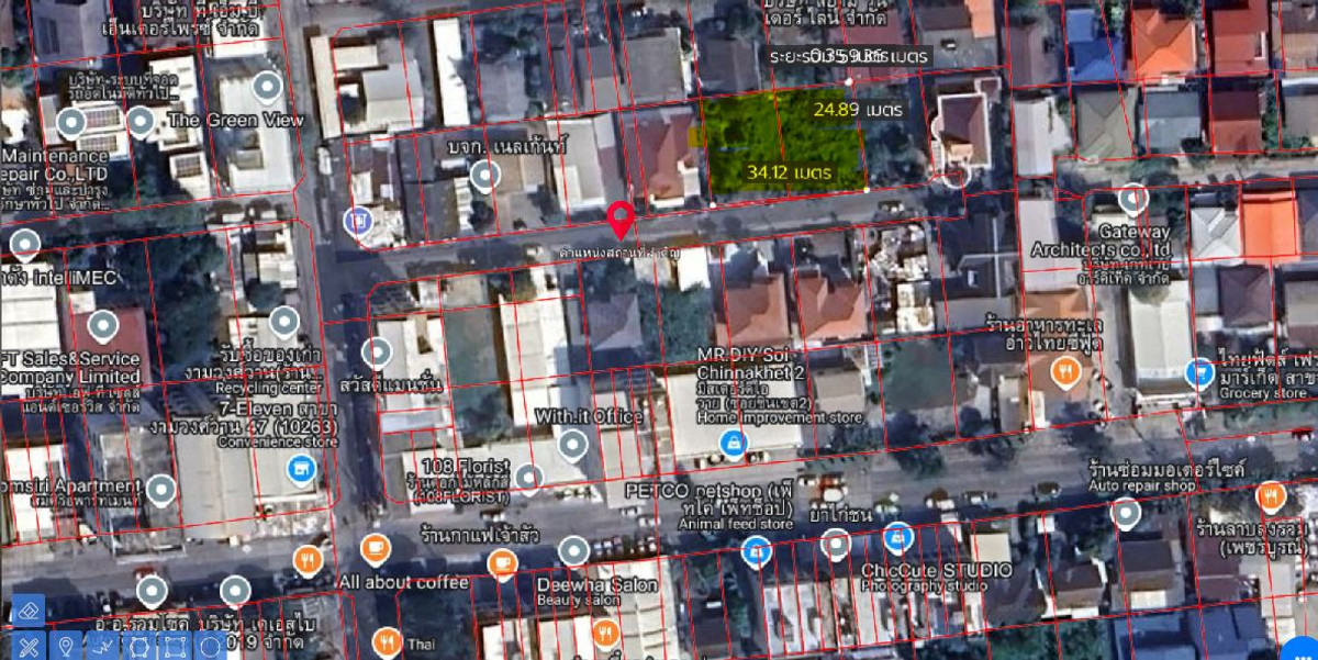Land for rent, Soi Ngamwongwan 47, Intersection 1-2 Land area 200 square wah equals 800 square meters Width 34 meters, depth 24 meters Thung Song Hong Subdistrict, Lak Si District, Bangkok 10210 https