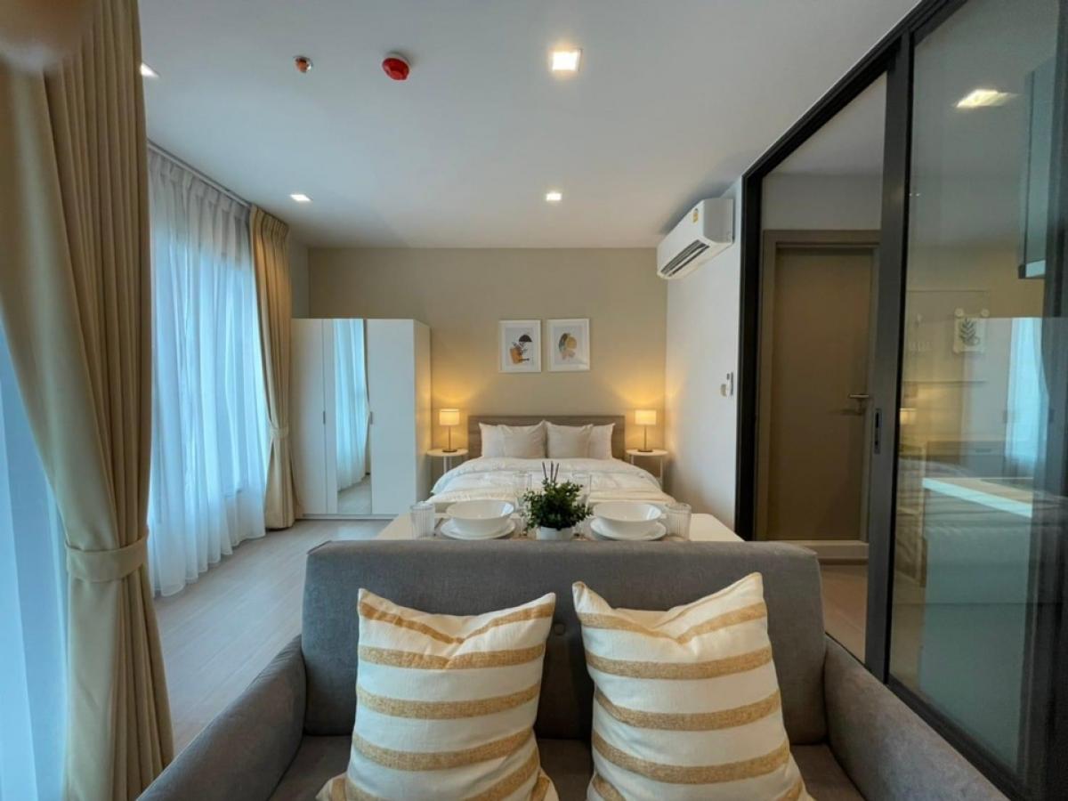 Size 28.04 sq m. Building A, 21st floor (on Rama 9 Road), south side, open view, see Makkasan Airport Link and green area, beautifully decorated in a minimalist style, fully furnished, drag your bags in and move in