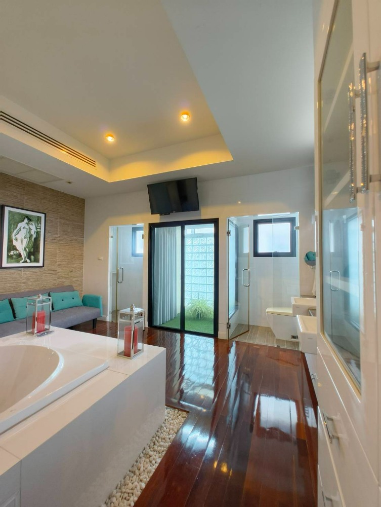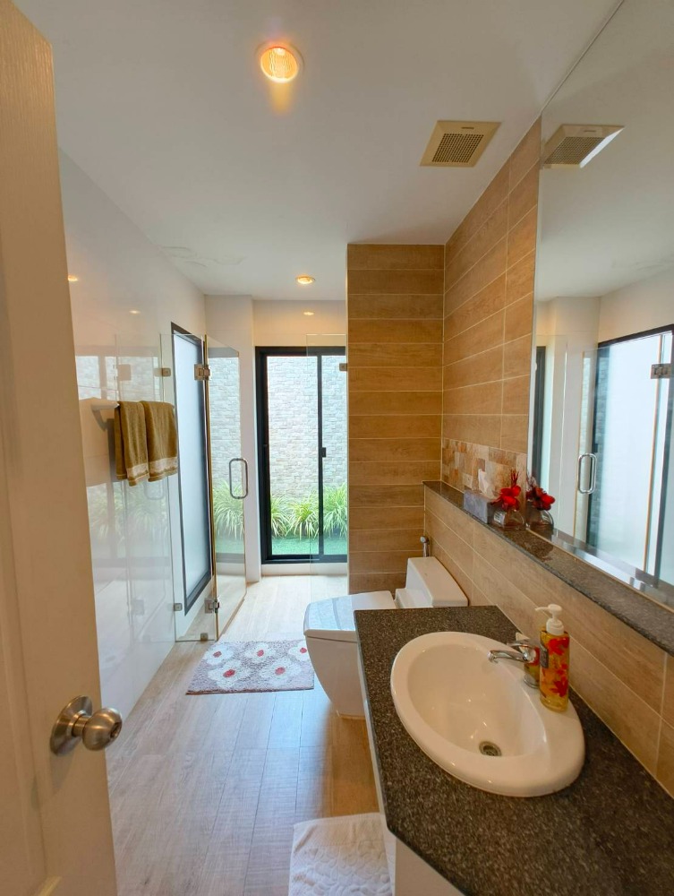 Single-family house for sale, 2 floors, beautiful house, ready to move in, Aqua Divina Village, Ramkhamhaeng 94 Location near the university and shopping center Land area 151 square wah Usable area 515 square meters House details: -4 bedrooms -4 bathrooms -2 kitchens -living room -TV room -10 air conditioners Exterior details of the house: -1 maids bedroom -1 maids bathroom -1 storage room -1 Maids kitchen -There is usable space for the maid -Can park 3 cars in the house and 2 in front of the house, and can be adjusted to park another 4 cars Inquire and make an appointment to view the house 1-2 days in advance at : Tel & Line : Contact number , Contact number Additional information : - Location on Ramkhamhaeng Road, connecting to the Eastern Ring Road, near Suvarnabhumi Airport. Can quickly connect to the city center by Orange Line (Cultural Center-Min Buri) Near important places: The Paseo Ramkhamhaeng, Tops Market Sukhapiban 3; Golden Place Sukhapiban 3; The Mall Bangkapi, international schools , National Institute of Development Administration, Karunvej Hospital, Sukhapibal 3, etc. #Single house #Ready to move in #Ramkhamhaeng #Suvarnabhumi #The Mall #Nida #Electric train