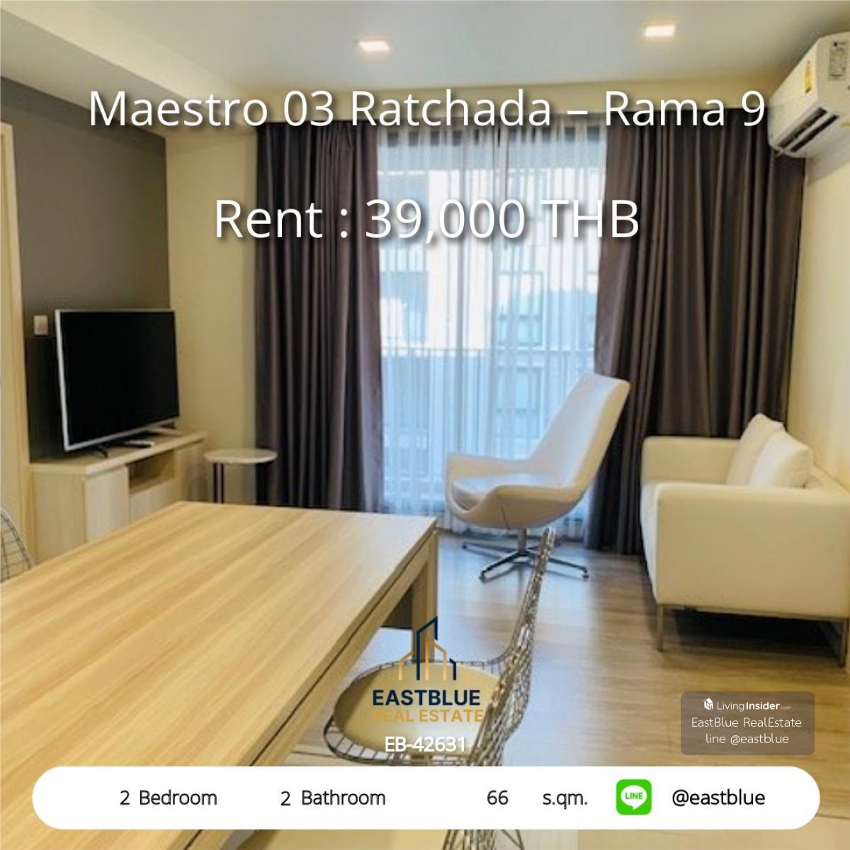 Ready to move in! Maestro 03 condominium at Ratchada-Rama 9, 2 bedrooms in the city centerRent 39,000 baht/month, near MRT Rama 9, convenient for every lifestyle!