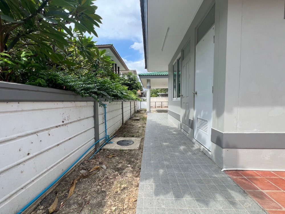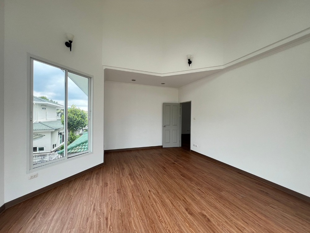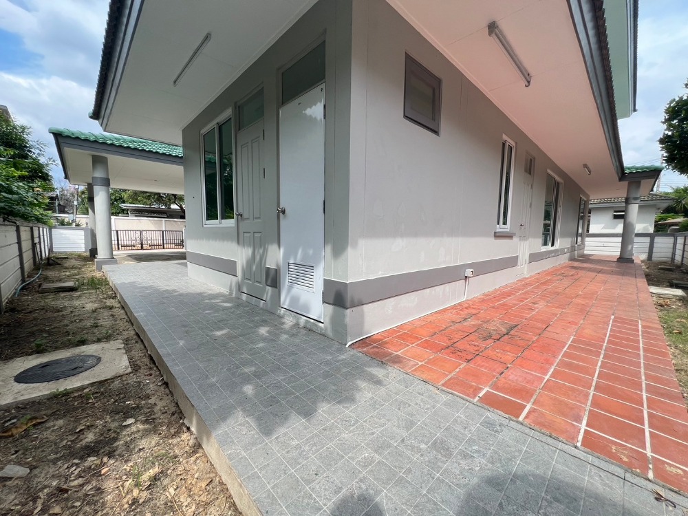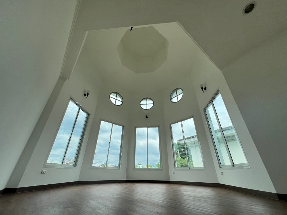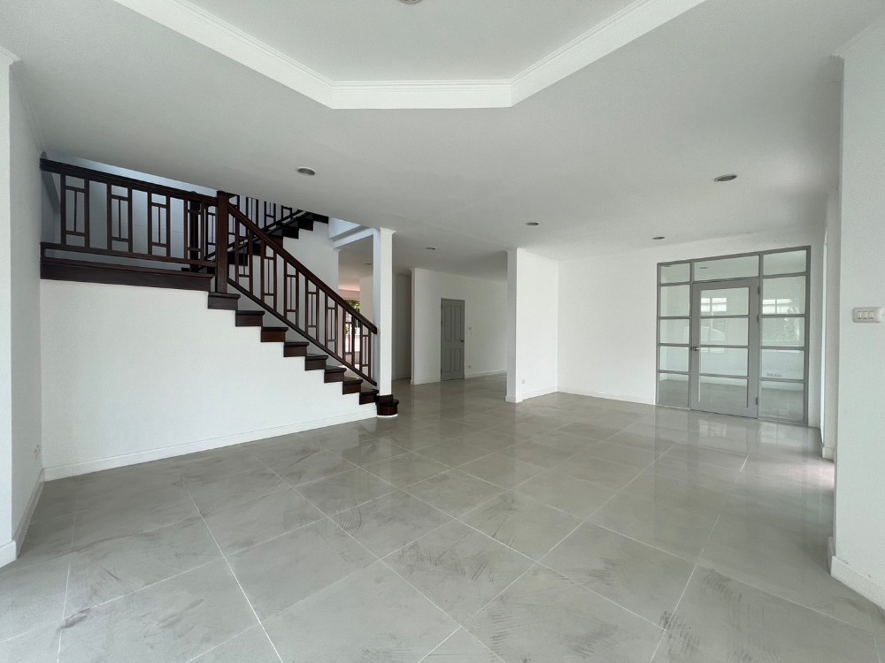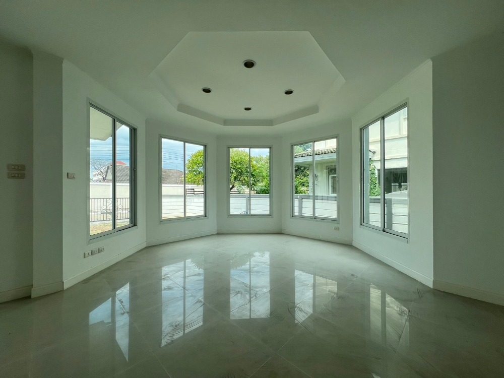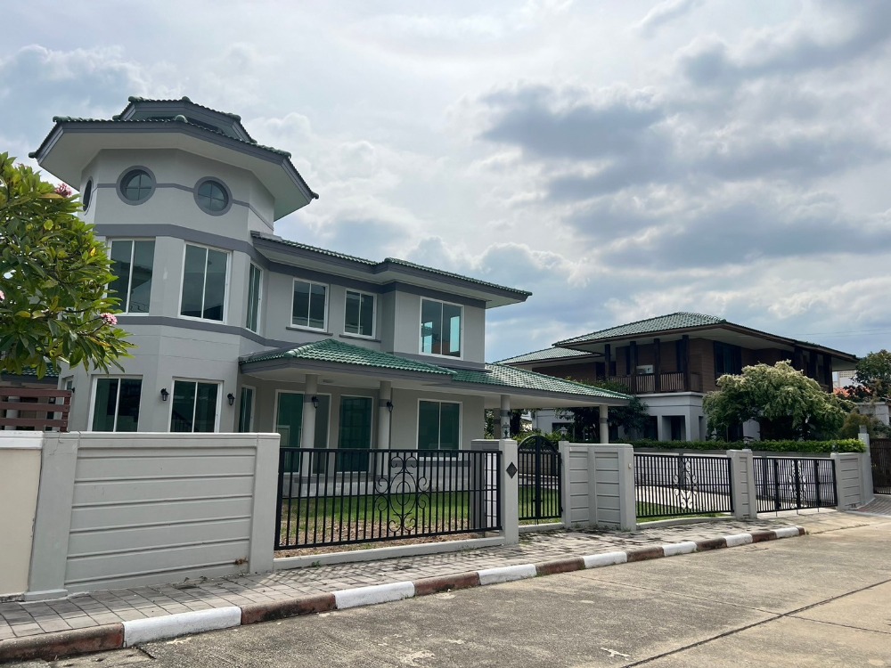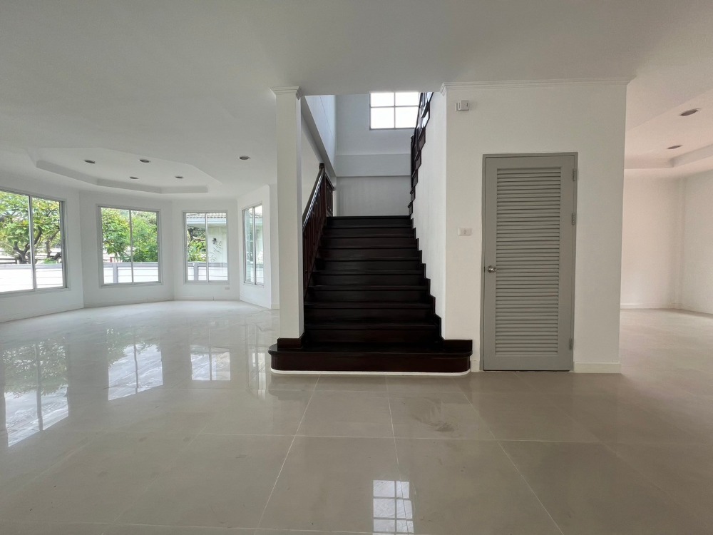 Highlights of this house: • 2-storey single house, English style, recently renovated the whole house, new paint, water and electricity systems, changed doors and windows, piled parking lot, new flooring, ready to move in • Land size 137 square wah, usable area up to 400 square meters • Strong structure, house won't sink, uses high quality materials, with a lawn area to walk around the house • Complete home functions, 3 large bedrooms, all with en-suite bathrooms, downstairs can be converted into a bedroom for the elderly/children's room • Unique, beautiful curved glass house design • The front of the house faces north Cool breeze, not hot sun, good ventilation according to Feng Shui principles Location and nearby amenities: • Located on the expressway - Ram Intra, convenient to travel • Near Crystal Park, CDC, Central East Ville shopping malls • Surrounded by leading restaurants, cafes and clinics • Near famous international schools such as KIS, SISB • Near Pothalai Golf Course, playground and Club House • It's a quiet dead end with only 2 neighbors, quiet and private atmosphere Pros and Cons: • Pros: It's a newly renovated single house in a luxurious, classic style, ready to move in. Quality materials, well-allocated space, connected to every zone, can arrange the space as desired • Cons: It's not a corner house and the house design is classic, not modern, but can be easily decorated to be a timeless design Price: 35 million baht (transfer fee 50/50), negotiable Interested in buying a single house on the expressway, ready to move in Contact for more information and to make an appointment to view Agent - NamPloy Suksiri (Ploy) Tel. Contact number Line : @propertyselected www.propertyselected.com We select, you get value.