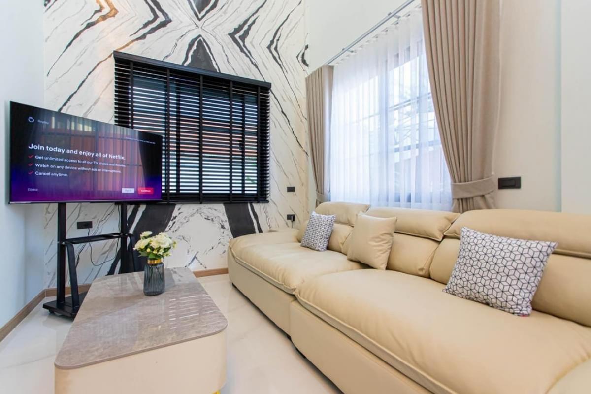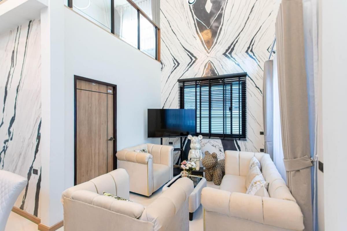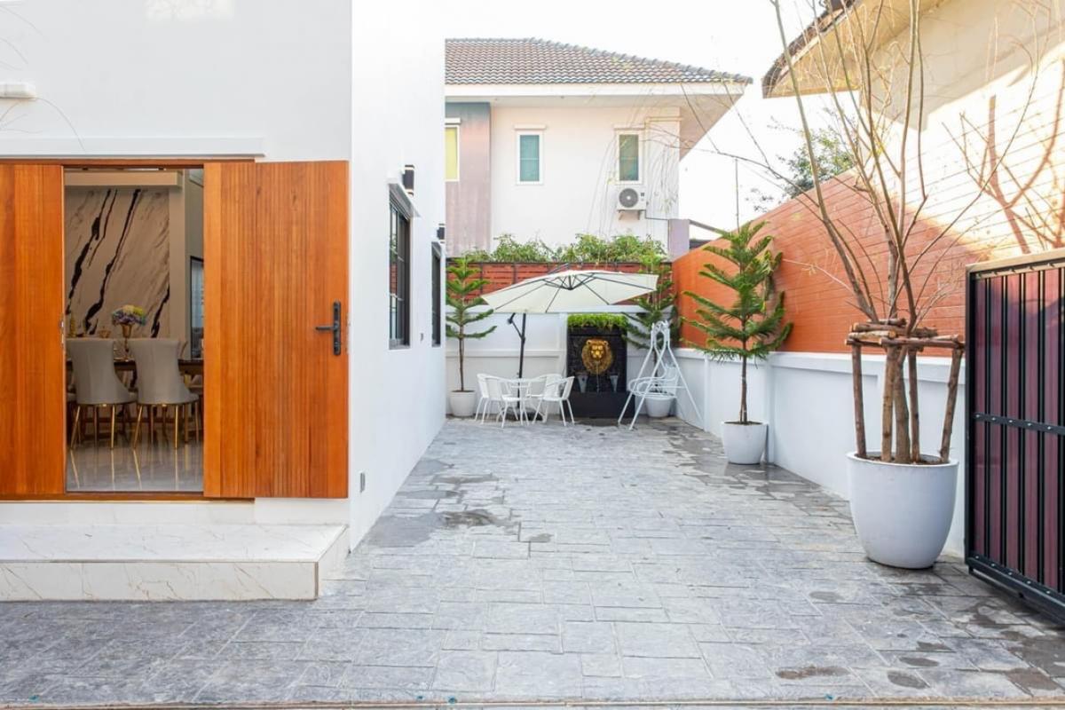 Luxury Single House @ Huai Khwang 5 bedrooms, 3 bathrooms, 1 tea room, 2 living rooms, 1 dining room 60 sq.w. 500 sq.m. Nearby places: Central Eastville / Home pro 3 km. MRT Huai Khwang 4 km. Huai Khw