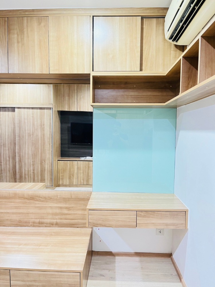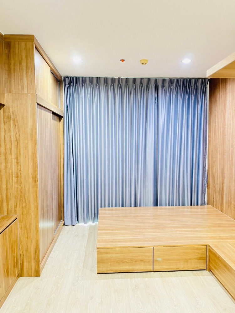 Condo Ideo Q Chula-Samyan, 11th floor, North side, view of Rama 4 Road, Samyan Market, beautiful, not blocked, area 22.67 square meters, electric stove and hood, built-in in the whole room, lots of storage space, suitable for people with a lot of luggage, can store a lot, making the room not cluttered Studio room, selling price 4.5 million baht, project completed in 2016, owner bought it for himself, never rented it out. Parking: 1 car. Facilities - Starbucks - Max Value - Laundry If interested, contact mobile phone Contact number, Line ID: teng25