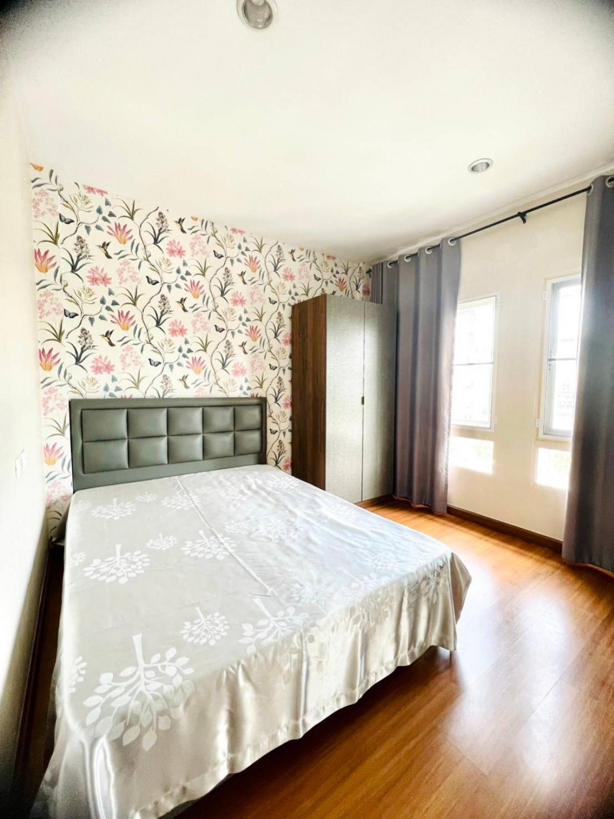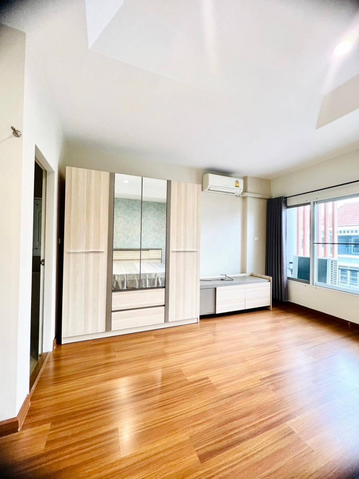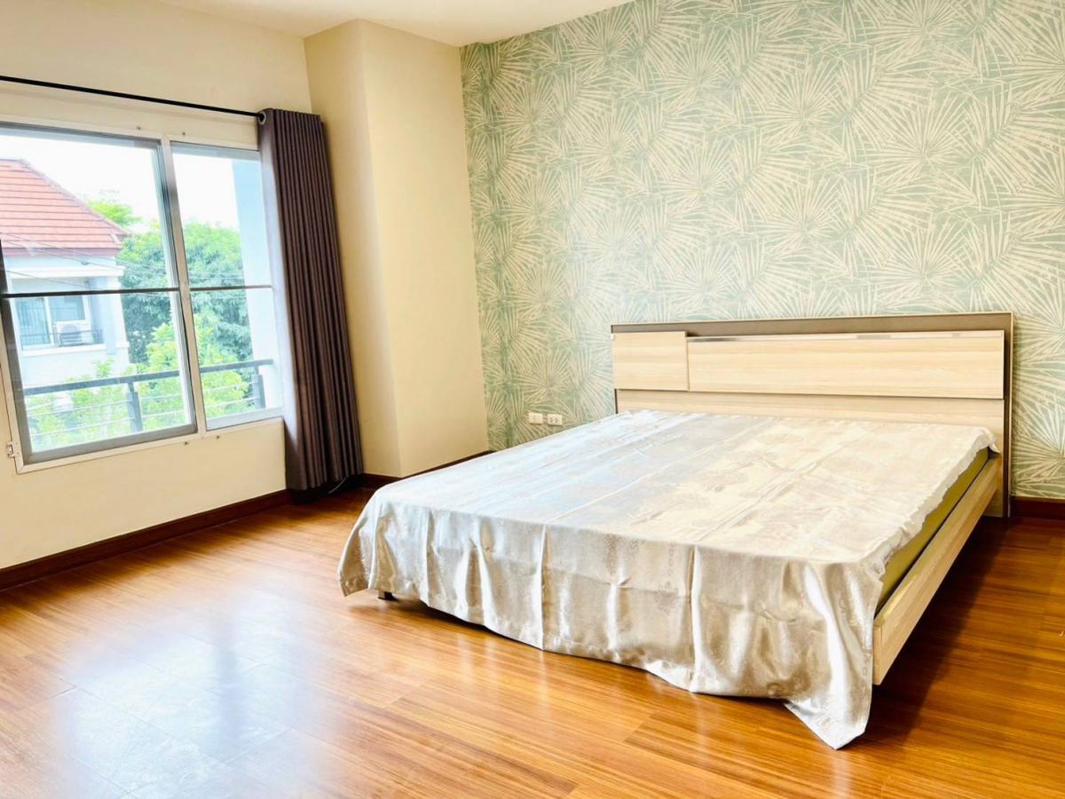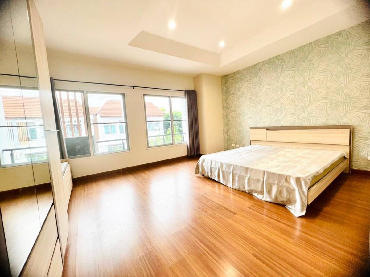 #House for rent near the BTS Baan Klang Muang Srinakarin Urbanian Srinakarin 46/1, front zone 3-storey townhome, size 25 sq.w., 180 sq.m. 3 bedrooms, 3 bathrooms, 2 living rooms 1 dining room, Thai kitchen & Western kitchen, fully furnished, cabinets, bed, sofa, water heater, TV, air conditioner in every room, mosquito nets throughout the house The best zone of the project, very convenient location 300 m. to the BTS, near Paradise Mall Seacon, Suan Luang Rama 9, schools Hospitals ✅Price 37,000/ month Including common fees, 1 year contract ❗Special, move in within November 35,000/month For more information, please contact Agent Tu Tel/Line Contact number ID line: thann69