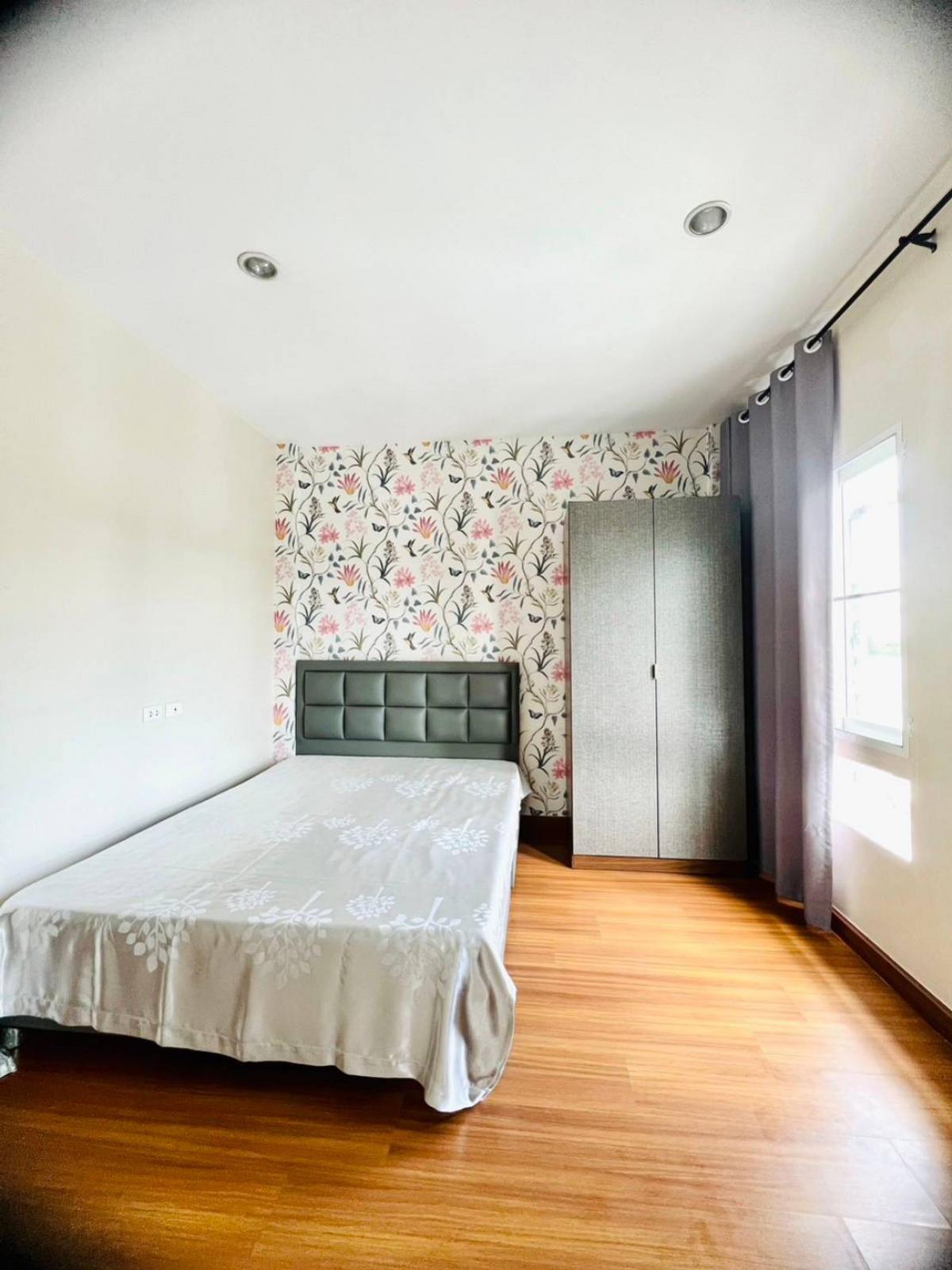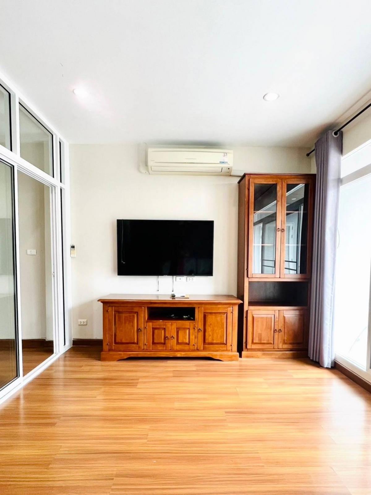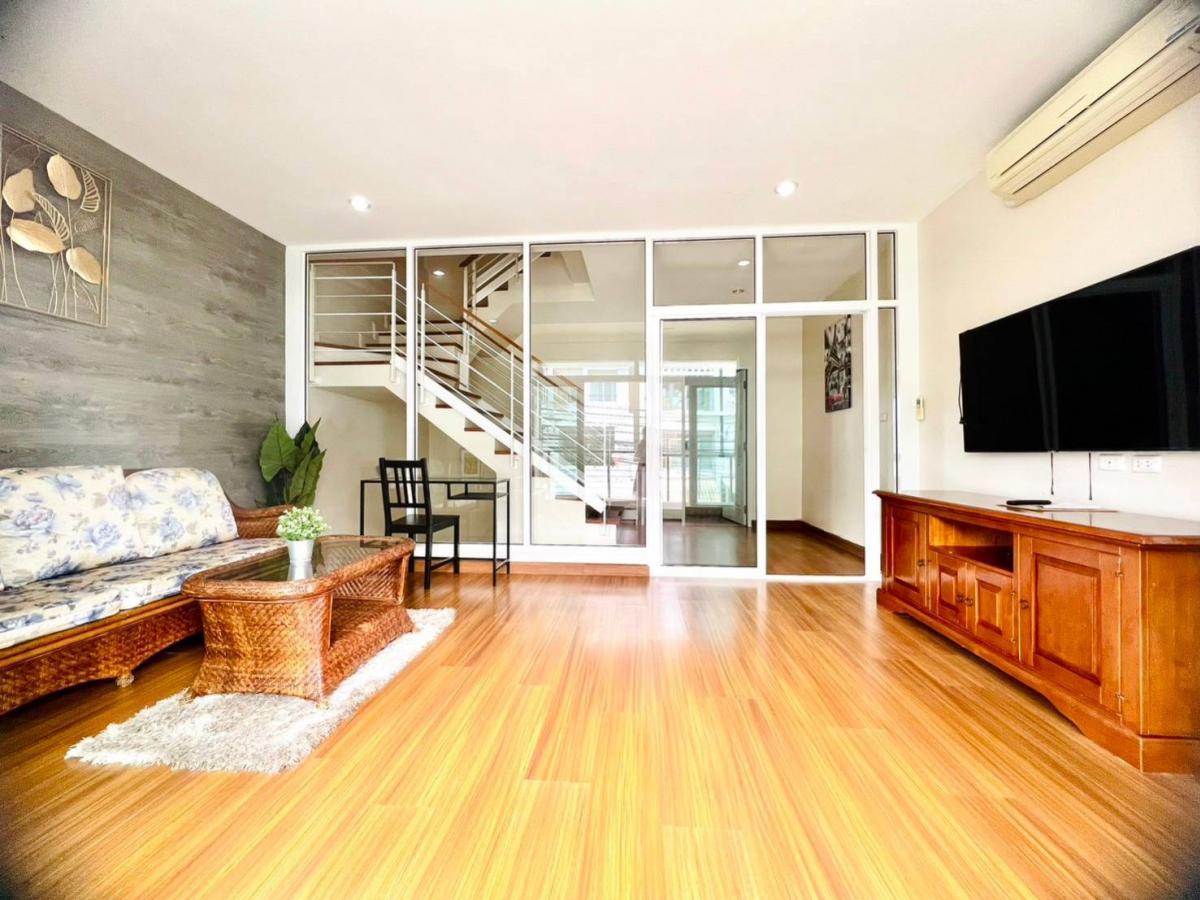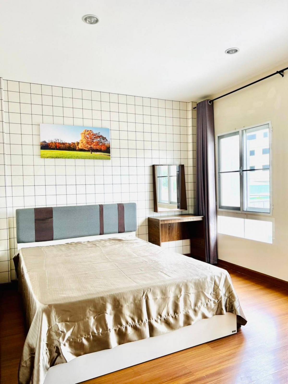 #House for rent near the BTS Baan Klang Muang Srinakarin Urbanian Srinakarin 46/1, front zone 3-storey townhome, size 25 sq.w., 180 sq.m. 3 bedrooms, 3 bathrooms, 2 living rooms 1 dining room, Thai kitchen & Western kitchen, fully furnished, cabinets, bed, sofa, water heater, TV, air conditioner in every room, mosquito nets throughout the house The best zone of the project, very convenient location 300 m. to the BTS, near Paradise Mall Seacon, Suan Luang Rama 9, schools Hospitals ✅Price 37,000/ month Including common fees, 1 year contract ❗Special, move in within November 35,000/month For more information, please contact Agent Tu Tel/Line Contact number ID line: thann69