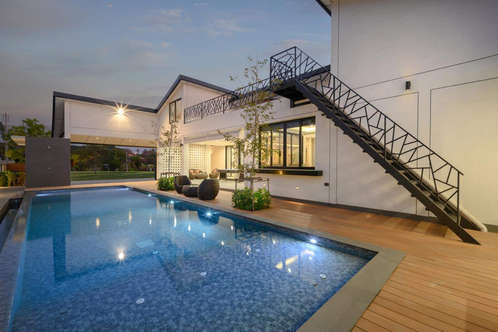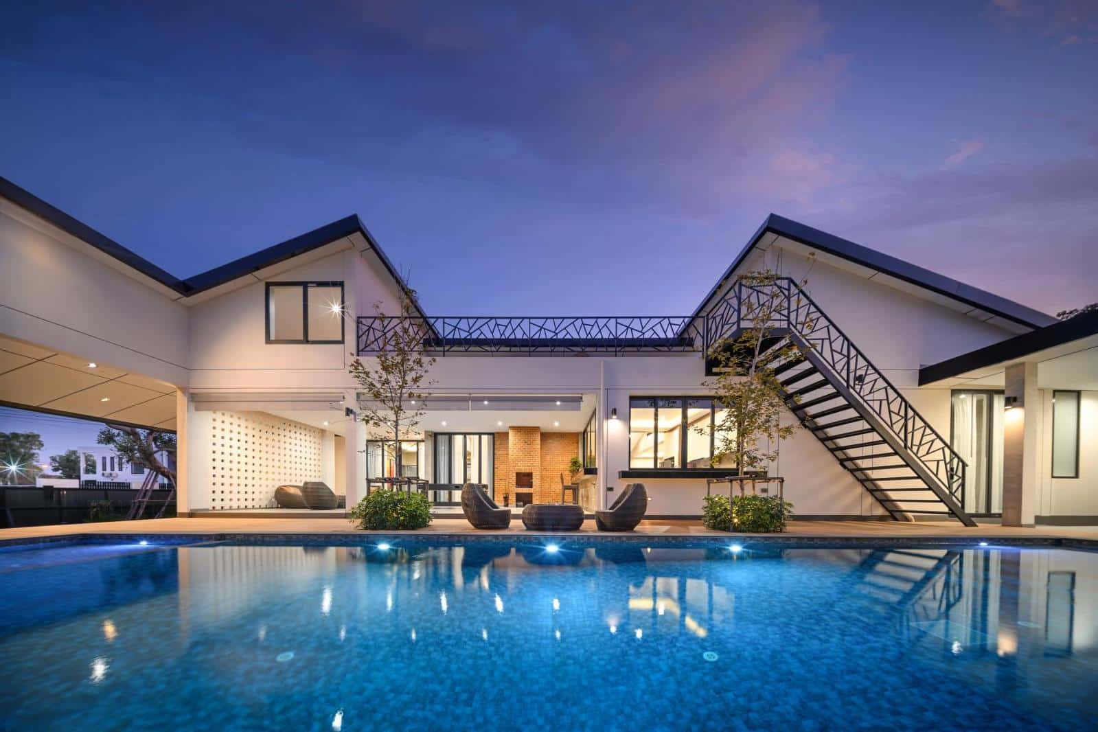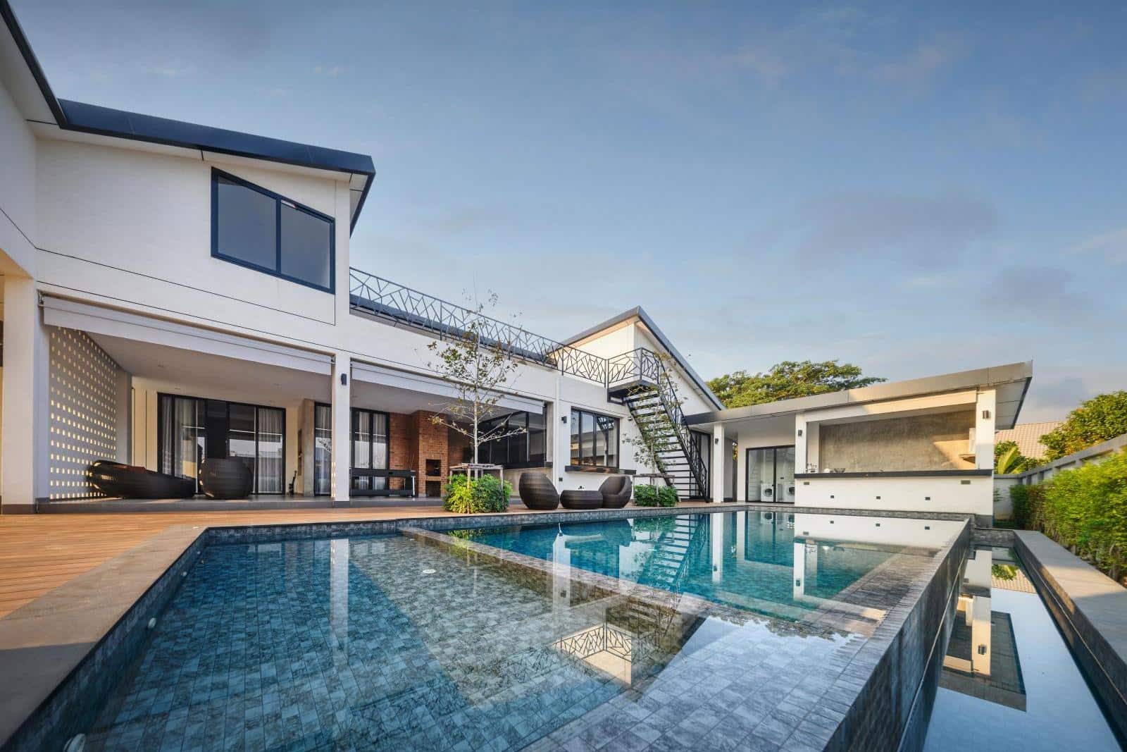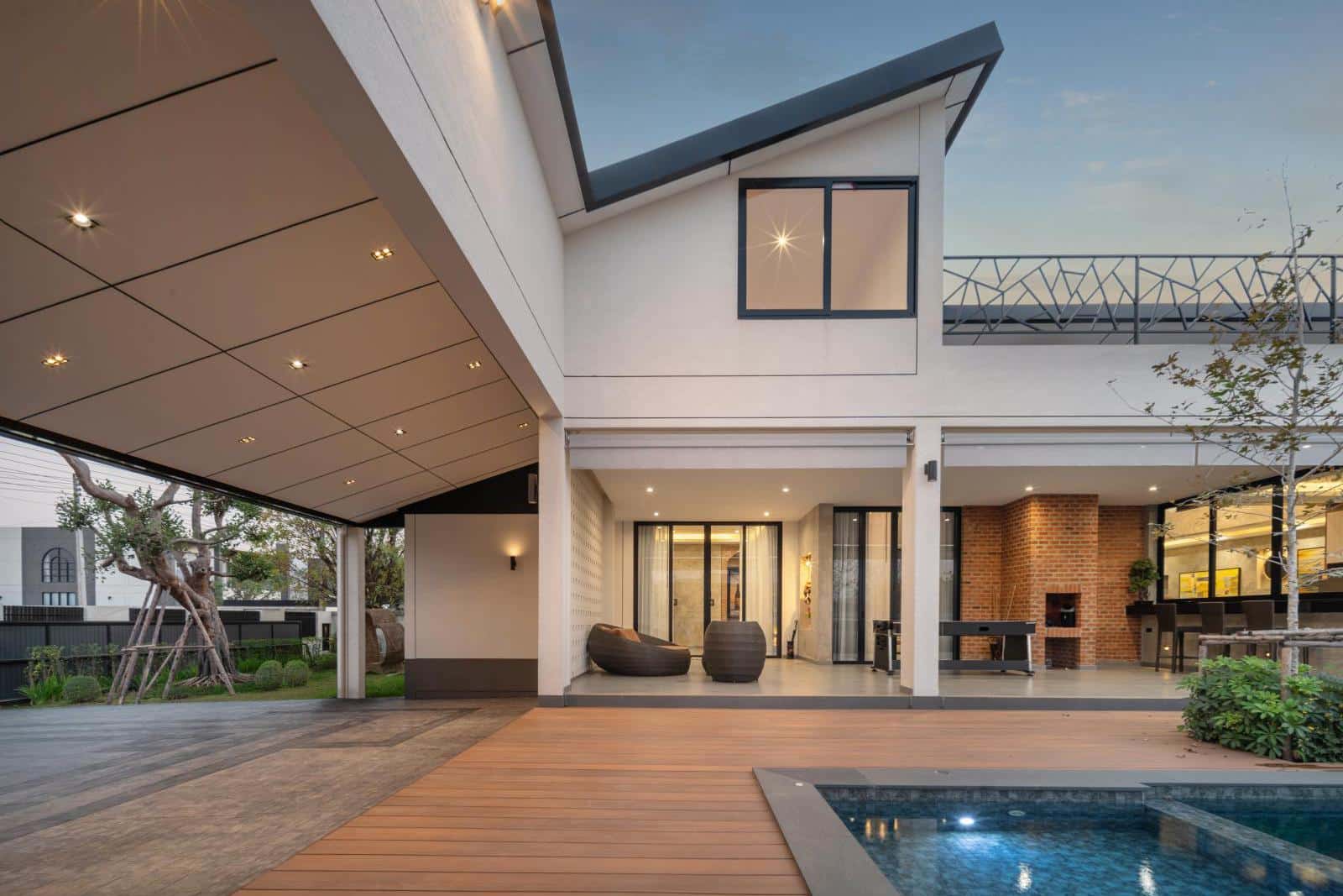 Stunning 4-bedroom, single story modern house in a prime location in Chiang Mai City, close to amenities, attractions, and nature. It boasts four spacious bedrooms, each with its own ensuite bathroom and walk-in closet. The master bedroom overlooks the pool and the garden.The house features a sleek and open living area, underground winery and lounge, a dining room, and a gourmet kitchen with luxury fixtures and appliances. The living area opens up to a covered patio, where you can enjoy the tropical climate and the views of the lush garden. The garden is landscaped with exotic plants, flowers, and trees, creating a serene and relaxing atmosphere.The pool is large and inviting, with outdoor dining area and counter bar off the kitchen allowing for al fresco dining. The house also has a covered parking area, with an electric vehicle charger and a storage room. The house is equipped with smart home technology, and security systems, making it comfortable, luxurious, and safe.*Price will vary sllightly depending on exact size of house and plot.