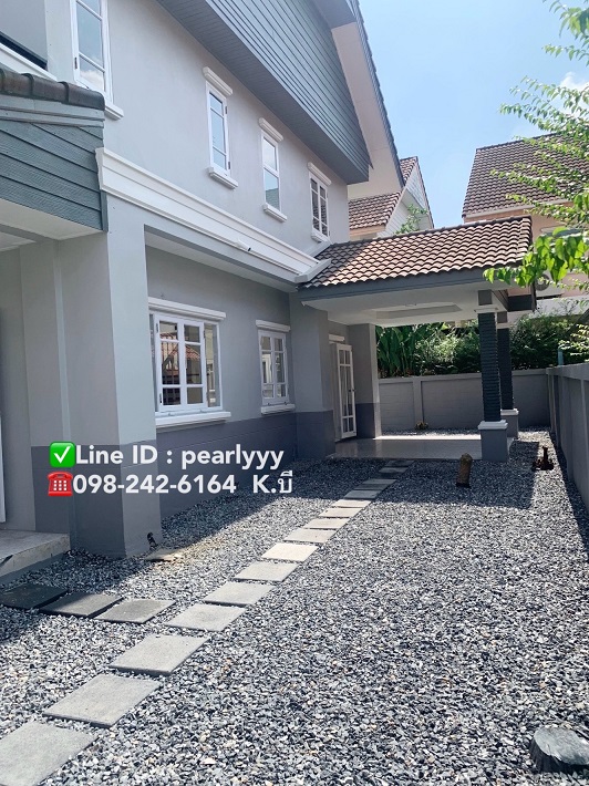 Zone: Min Buri, Ramkhamhaeng Rd. 190/1 🔥Selling at a promotional price of 5,280,000.-reduced from the normal price of 5,680,000.-🔥 🏡For sale: 2-storey detached house, area 65 sq m., Parkway Village, Chale 2, Soi Chale 45/3, Ramkhamhaeng Rd. 190/1, Min Buri Subdistrict, Min Buri District, Bangkok Province (The whole house has been renovated) ✅The house has 3 bedrooms, 1 dressing room, 3 bathrooms, 1 living room, kitchen extension, there is a multi-purpose area on the side of the house. and extend the carport roof 🚗Can park 4 cars in the house ✅The village has a clubhouse with a swimming pool, a relaxation garden in the village, you can run-walk and exercise in the village 🥰 ✅ Decoration: - 1st floor, granite floor, 2nd floor, parquet floor - Kitchen floor, tiled - Parking lot floor, tiled - Built-in furniture - Adjust the fill of new soil around the house Ready to pave the walkway around the house ✅Orange Line electric train passes ✅Opposite the village, there is Lotus, Big C, Rinthong fresh market 📌Nearby places: - Nawamin Hospital 1,9, Sinphaet Hospital-Serirak - Thepaksorn School, Ruamrudee International School, Songwit Suksa School, Sarasas Witaed Suksa School - Kasembundit University - Rinthong fresh market - Lotus, Big C, Home Pro, Thai Watsadu, Mega Home - Many department stores ✅Travel: - Orange Line electric train - Bangkok-Rayong Motorway - Kanchanaphisek Ring Road ————————————————————— Consult / Interested in making an appointment to see the house… ☎️ Contact number K.B 📳Line : pearlyyy https://line.me/ti/p/WtJSzd2alL ————————————————————— ❤️Get 100% bank loan ❤️Newly renovated house, ready to move in ❤️Free‼️Water meter, electricity meter ❤️Free‼️Apply for bank loan 💥Selling below appraisal price 💥With loan service for bank loan application‼️ 💥Various expenses for transfer of ownership 50/50