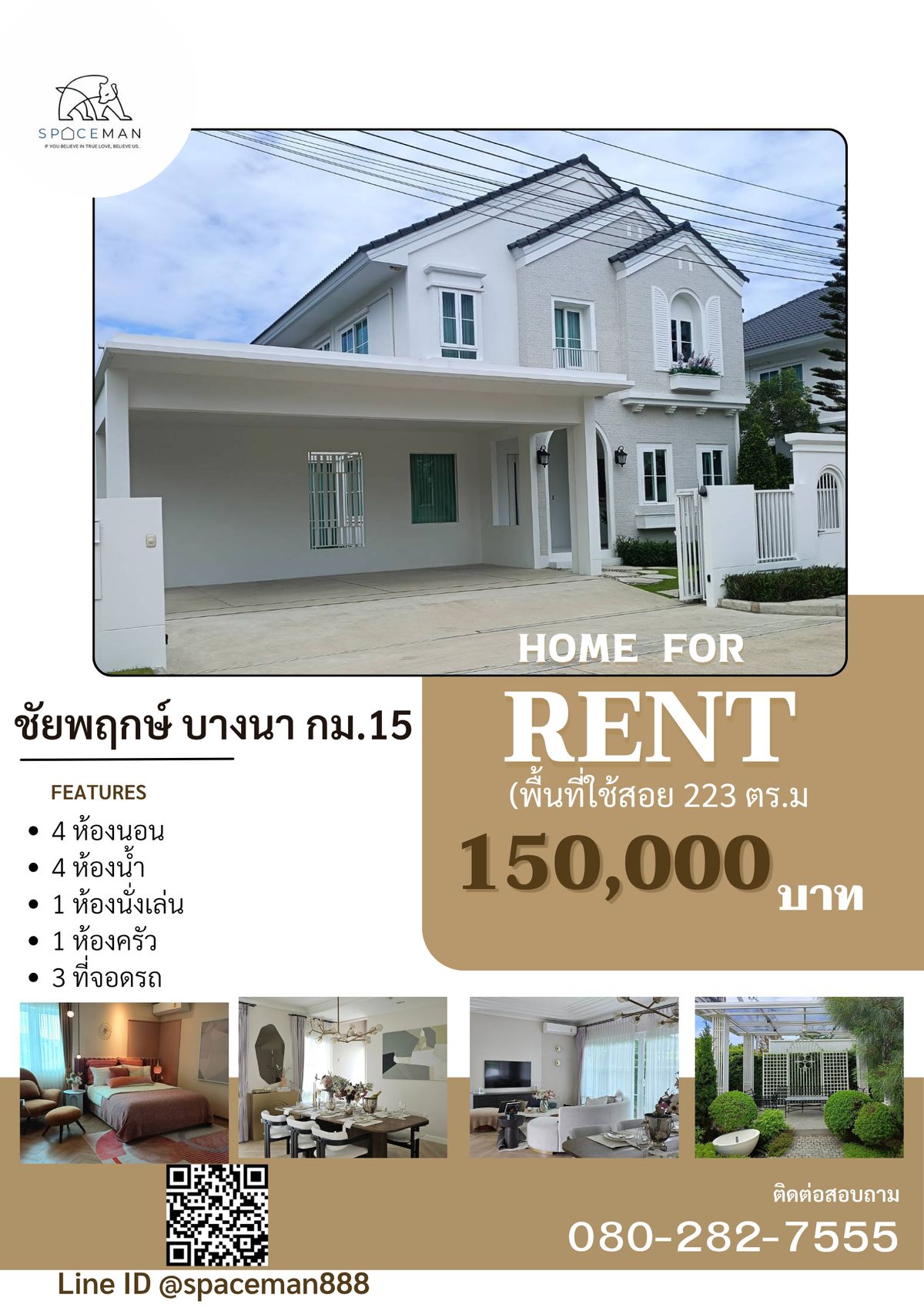 🌟🏡⭐️ House for rent, Chaiyapruek Bangna project, Km.15, beautifully decorated, corner house, ready to move in, convenient transportation, good location