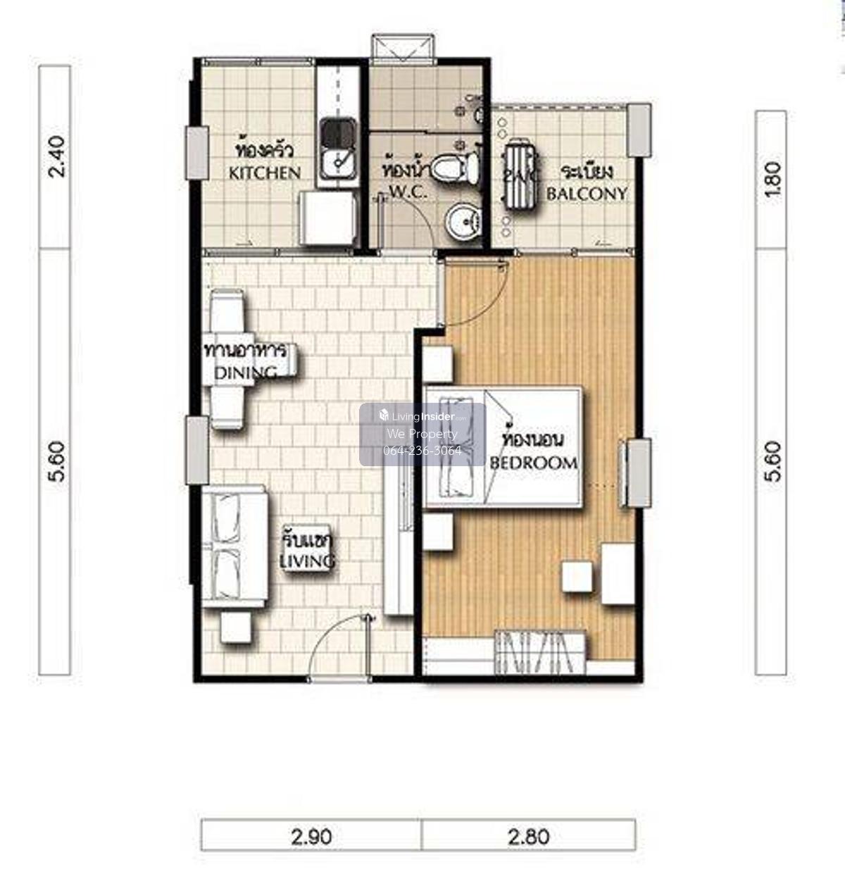 Property code (C3-AIR01) Supalai City Resort Ratchada-Huai Khwang 1 bedroom, 1 bathroom Size 45.28 sq m., 8th floor, Building 5 City view, newly renovated room Never rented out Selling for only 2,790,