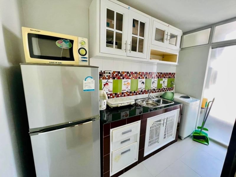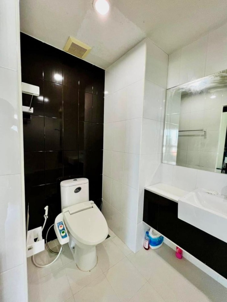 For rent, Ladda Condo View Sriracha Good location, in the heart of Sriracha Rental price only 15,000 baht / month Deposit 2 months - 1 month in advance (including common fee) 10th floor Room size 62 sq m. 2 bedrooms, 1 bathroom 1 living room Beautiful, clean, minimal room Fully furnished, convenient transportation Nearby places - Near Atara Mall - Max Value - Robinson Sriracha - Phyathai Hospital - Samitivej Hospital - Central Sriracha - Koh Loi Public Park - Market and government center Furniture in the room - Bed with 5-foot mattress - Wardrobe - Sofa - Work desk with chair - Dining table with chair - Center table Electrical appliances - Air conditioner (bedroom, living room) - Refrigerator (2 doors) - Water heater - Microwave - TV - Top loading washing machine - Electric stove Central area - Fitness room - Swimming pool - 24-hour security system - CCTV with key card access - Parking lot T : A5
