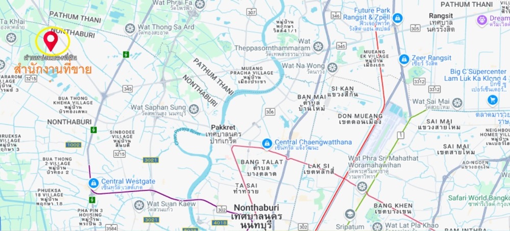 For sale office and land, Bang Bua Thong, Nonthaburi Bang Bua Thong Road, Suphan Buri Area 360 square wah Details: -2-storey office building and rooftop Area 397 square meters, 2 bathrooms -Parking fo