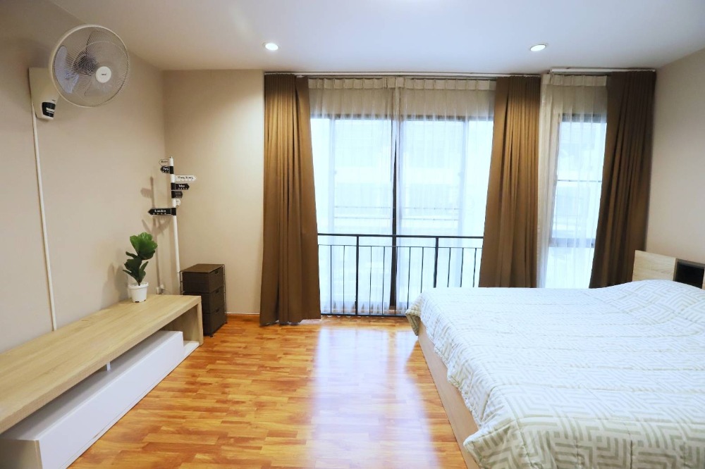 3-storey townhouse, corner unit, beginning of the project, has 35 units Distance from BTS Bang Chak only 700m. Usable area 190 sq m, 3 bedrooms, 4 bathrooms 5 air conditioners (recently cleaned) New w