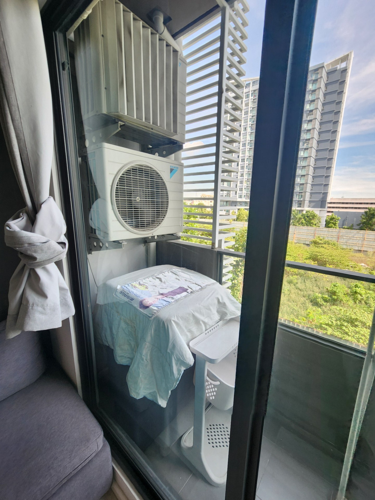 Condo for rent, Ease Rama 2, near Central Rama 2, with complete furniture + washing machine, only 6,500 baht, Building B, 4th floor, size 27 sq m, 1 bedroom, 1 bathroom, with washing machine, bed, war