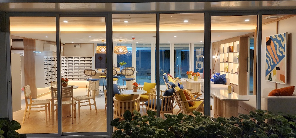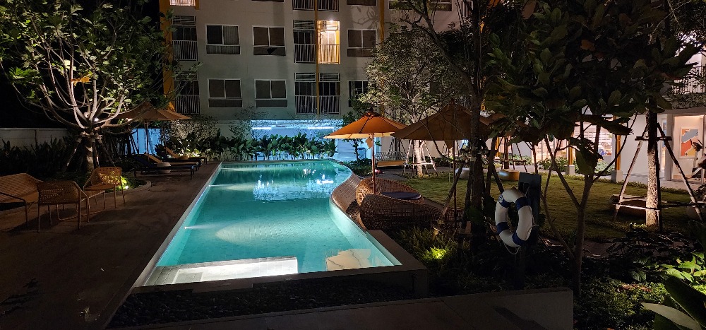 Condo for rent, Hay Hua Hin, next to True Arena Hua Hin, studio room, size 25 square meters, fully furnished, including bed, mattress, wardrobe, sofa, work desk, 2 layers of curtains, air conditioner, TV, refrigerator, microwave, water heater, washing machine, complete with utilities, swimming pool, garden, fitness, parking, elevator, key card entry system, 24-hour security system, and near 7-11, opposite Vana Nava Water Park, near Hua Na Market, and 5 minutes to Blue Port Mall and Hua Hin Market Village Mall. For rent 7,500 baht per month. Interested in renting, contact Mr. Sam Contact number Line: id 6851152