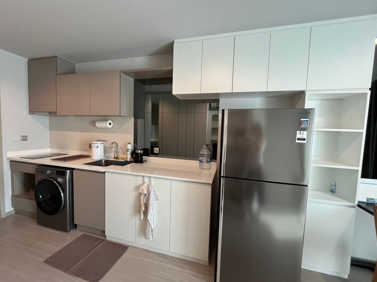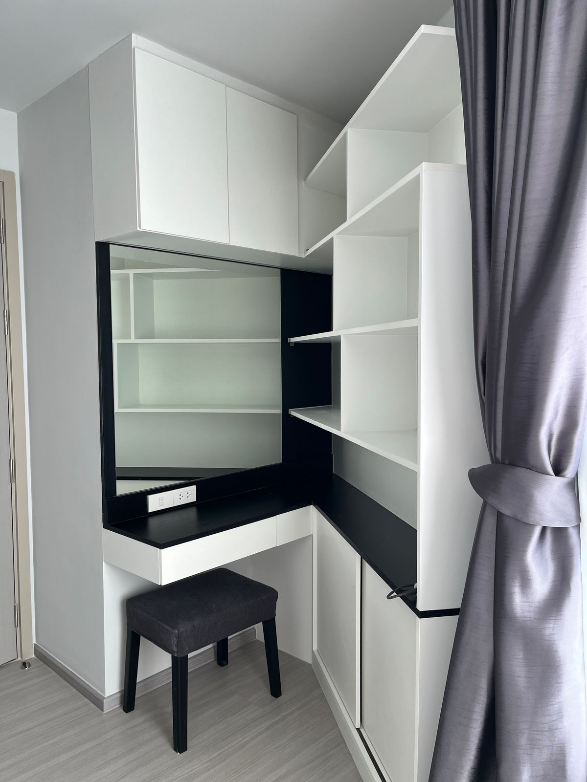 A unique corner unit on 14th floor of Building A is 35 sq.m. with 1 bedroom and 1 bathroom. There is only 1 room of this panoramic view type in each floor. Location of Life Ladprao is very convenient. BTS Sky train is in front of the condo. Central department store is just across the street. Rot Fai Park is only 1 station away. And Don Muang International Airport is just 30 minutes (15 km.) away. . Built-in furniture, 2 air conditioners. Ready to move in. • Living room - Built-in furniture: Expanded kitchen section with Wall-mounted cabinet, bookshelves, multipurpose shelves, wardrobe • Bedroom – Built-in furniture: dressing table with stool, multipurpose shelves, king-size bed with bedside cabinets • Electrical appliances: Refrigerator (Hitachi inverter), Electric stoves with hood, Washing machine and dryer (2 in 1), Water heater (Stiebel eltron) • Bedroom: King-size mattress (Sera Grande – latex with memory foam), 2 + 2 Pillows + bolsters (brand-new) • Two air conditioners (Daikin): 14,000 BTU and 18,000 BTU • Windows and balcony door are installed mosquito wire screen and curtain Facilities: Fitness (Panoramic Health Club), Stream / Sauna room, Swimming pool, Sky lounge, EV Charger, Parking Please contact via Line ID: suree-ma Or email: Contact email