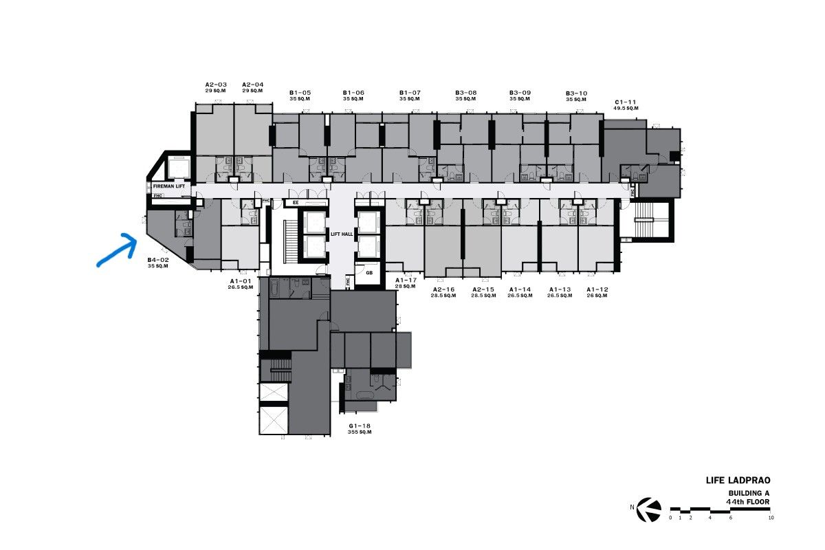 A unique corner unit on 14th floor of Building A is 35 sq.m. with 1 bedroom and 1 bathroom. There is only 1 room of this panoramic view type in each floor. Location of Life Ladprao is very convenient.