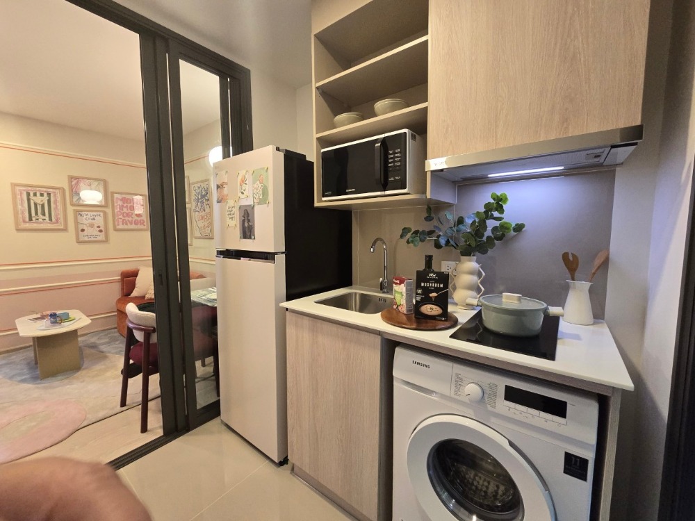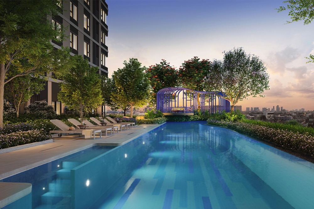 🛏️ : 1 bedroom, 1 bathroom 📦 : Area 25.5 sq.m. 🎊: 9th floor ✅ 𝙏𝙝𝙚 𝘽𝙖𝙨𝙚 𝙒𝙤𝙣𝙜𝙨𝙖𝙬𝙖𝙣𝙜, a new concept condo, near 𝗠𝗥𝗧 Wong Sawang, only 1 minute Delighting the new generation with a Loft room with a lot of