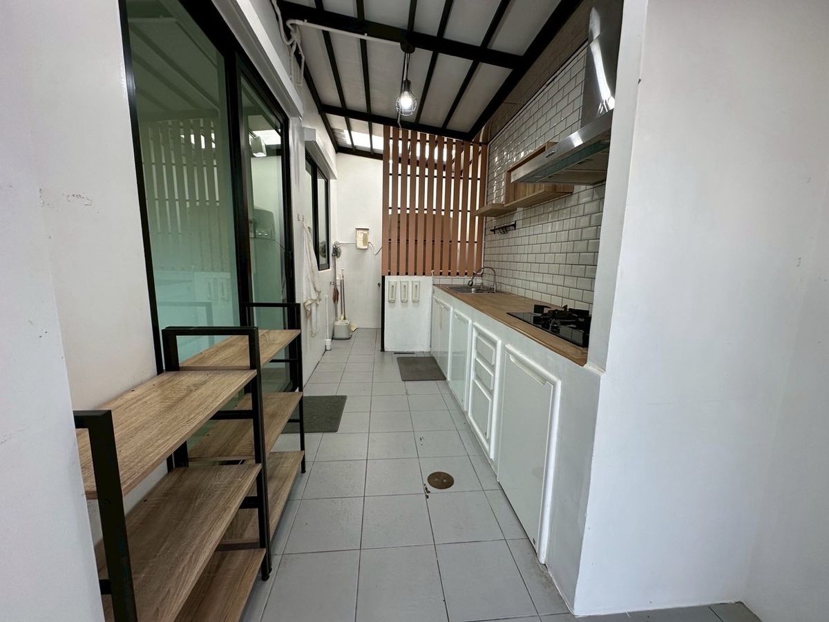 📍 House Details: Corner house facing south, ideal for great ventilation. Usable area of 118 sqm on a 30.10 sq.wah land plot. Side yard dimensions: 3x10 meters, complete with a private garden. 3 bedrooms, 2 bathrooms, and 1 multipurpose room. Parking for 2 cars with an extended carport roof for added convenience. Fully extended kitchen at the back, ready for use. 📍 Key Features: Corner house near the entrance and adjacent to the central park. Spacious side yard, perfect for gardening, relaxing, or family activities. Fully extended features, including a kitchen and carport, ideal for families looking for a ready-to-move-in home. 📍 Extras Included: 4 Mitsubishi air conditioners. Fully equipped kitchen: gas stove, range hood, and sink. Curtains throughout the house and additional furniture included. 💰 Price: 3.59 million THB 🏡 For inquiries or to schedule a viewing, please contact: LineId : auckarapon