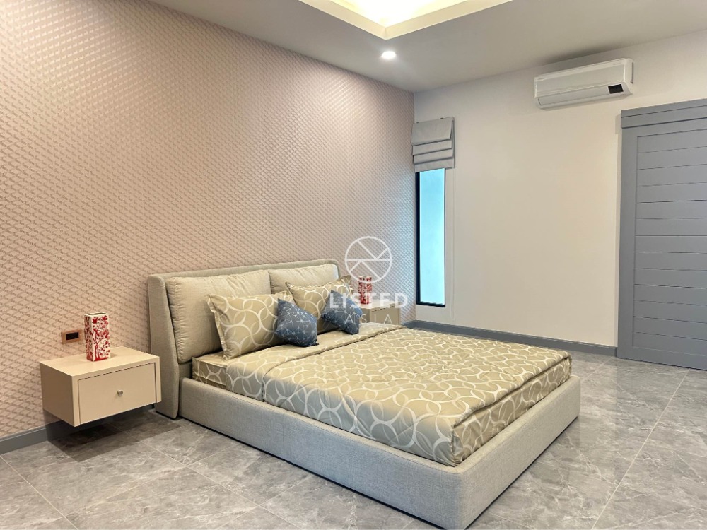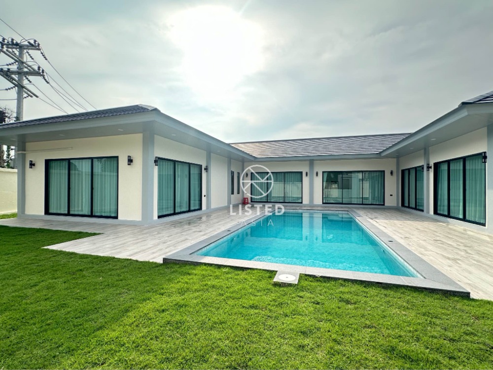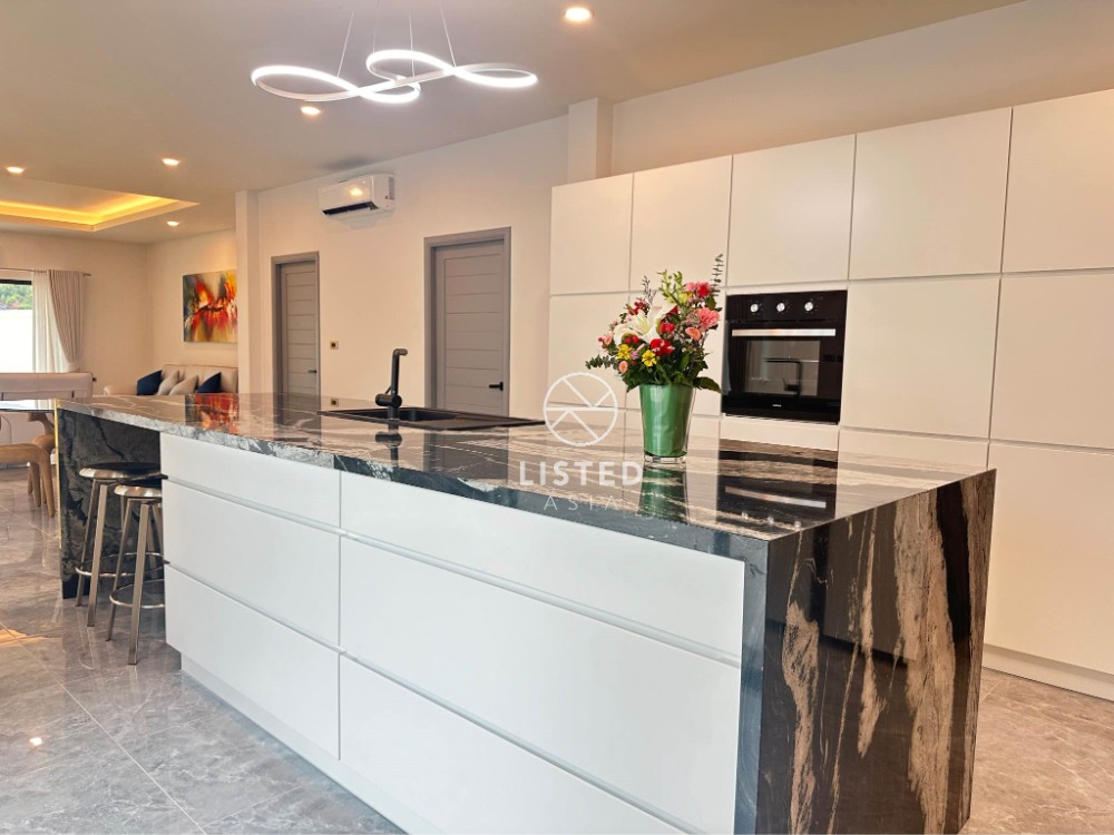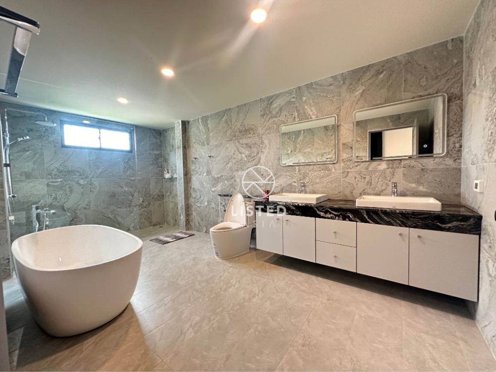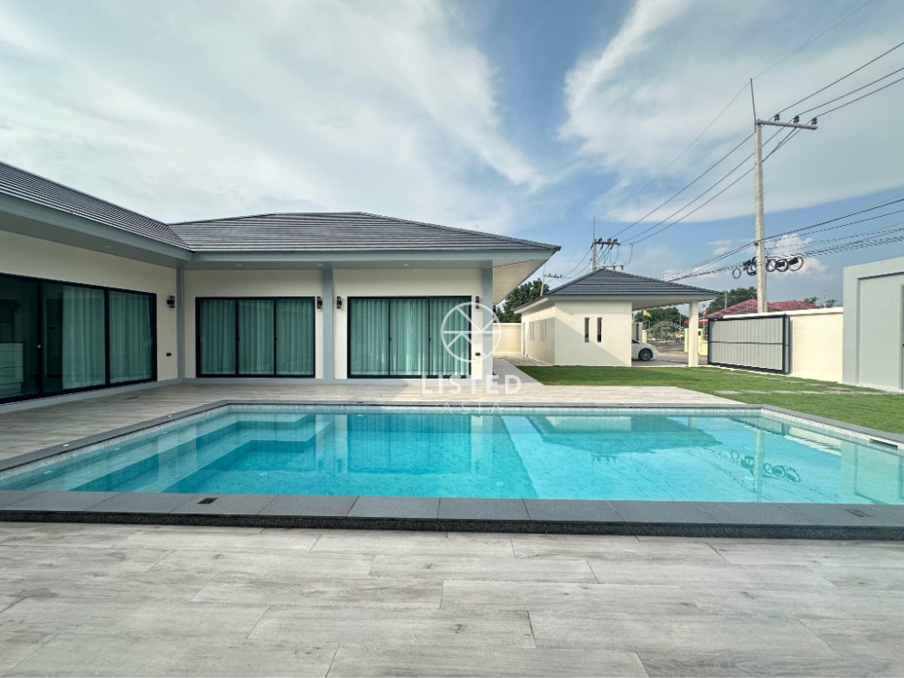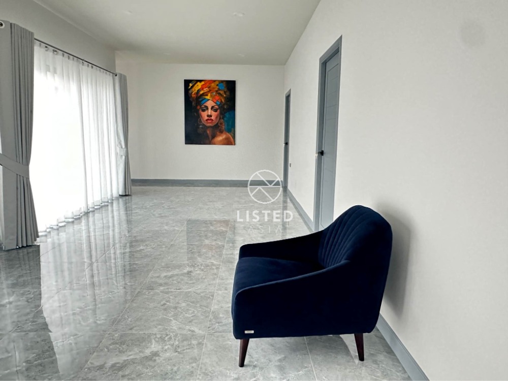 Pool Villa for Sale in Huay Yai!! set on a 856 sqm land plot size with a 450 sqm usable area, features 4 bedrooms with en-suite bathrooms and a total of 5 bathrooms. The master bedroom includes a modern bathtub, while the other bathrooms are fitted with high-quality fixtures. Highlights include a private 3.5x9-meter swimming pool with modern tiles, a landscaped garden, and interiors adorned with wallpaper and solid teak wood doors. The European and Thai kitchens complement the elegant design. With 2.2-meter-high walls ensuring privacy and parking for up to 7 cars, this villa offers a perfect blend of luxury, style, and comfort. Facilities: - Swimming Pool - Car Park - Garden Baan Balina 3 is located in Huai Yai, Pattaya, Chonburi. This prime location offers easy access to Sukhumvit Road, making it convenient for trips to Pattaya, Jomtien, and Bang Saray. The area is well-connected and close to essential amenities such as schools, shopping centers, healthcare facilities, and recreational spots, including the international sports stadium and nearby beaches. Contact us today to view this property. Tel/WhatsApp: Contact number Emahttps://www.listedasia.com https://www.listedasia.com/
