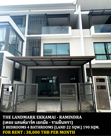 FOR RENT THE LANDMARK EKKAMAI - RAMINDRA / 3 bedrooms 4 bathrooms / 22 Sqw. 190 Sqm. **38,000** CLOSE TO LIAB DUAN NIGHT MARKET