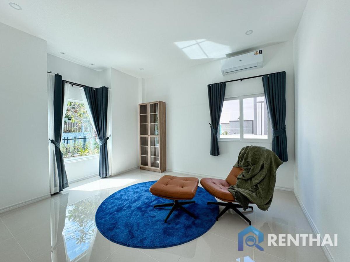 Listing code: #RT02793 3 bedrooms home in Pong, Pattaya. Spacious living area 171 sq.m. Suitable for modern living, fully furnished space on 73 sq.w land. Single-story living with a lush garden view. Near by the international school, Maprachan Lake, Motorway No.7, easy for transportation to Bangkok or Rayong. Only 20 minutes to Pattaya City. Sale price: 6,640,000 baht - 3 bedrooms, 2 bathrooms - Land size 101 sq.w. - Usable area 183 sq.m. - 1 floor - Garden view - Thai quota - Fully furnished Facilities: - Private pool - Private Garden - Garden Access - European kitchen - Washing Machine - Terrace Location: Pong, Pattaya For more details feel free to contact us by Tel: Contact number WhatsApp: Contact number Line ID: minehappiness https://line.me/ti/p/4FWcxgo_eM (click the link to add line) ……………………………………………………………………… Website: https://renthai.com Facebook Page: https://www.facebook.com/renthai.pattaya Line Official: @renthai Email: Contact email Renthai - your reliable assistant in buying, selling and investing in real estate in Pattaya.