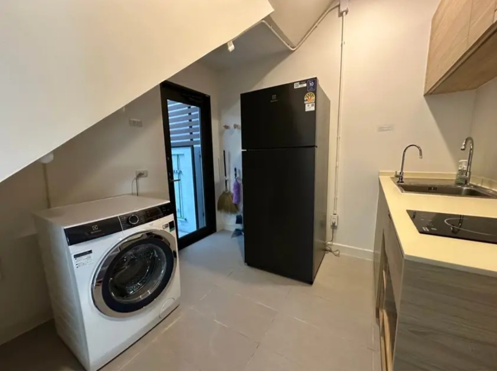 For rent: 3-storey twin house on Prasertmanukit Road, near Sukonthasawat intersection. Fully furnished and equipped with electrical appliances. Ready to move in. Suitable for living or as a home offic