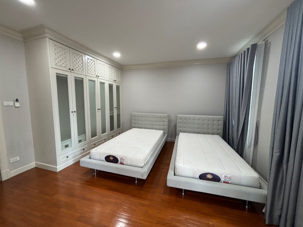 *Newly Renovated* House for rent, Baan Klangkrung Thonglor on Soi Sukhumvit 55. Near BTS Thonglor and Ekkamai 4-storey house, 51.2 sq.w., usable area 350 sq.m. 3 bedrooms, 5 bathrooms, elevator on every floor The largest house in the village. Corner house with maid//////'s room. Parking for 3 cars in the house, The house was just renovated, everything was changed. Suitable for families and the elderly because there is an elevator inside the house The house is decorated in a modern style, Double Volume, high ceiling more than 5 meters, airy and comfortable Fully built-in furniture, Ready to move in. Best location in the city center. Near BTS Thonglor, Ekkamai, Phrom Phong. Opposite J Avenue Thonglor, surrounded by restaurants, cafes, etc. For rent only 130,000 baht/month