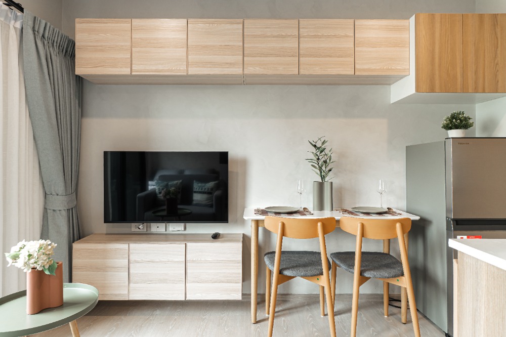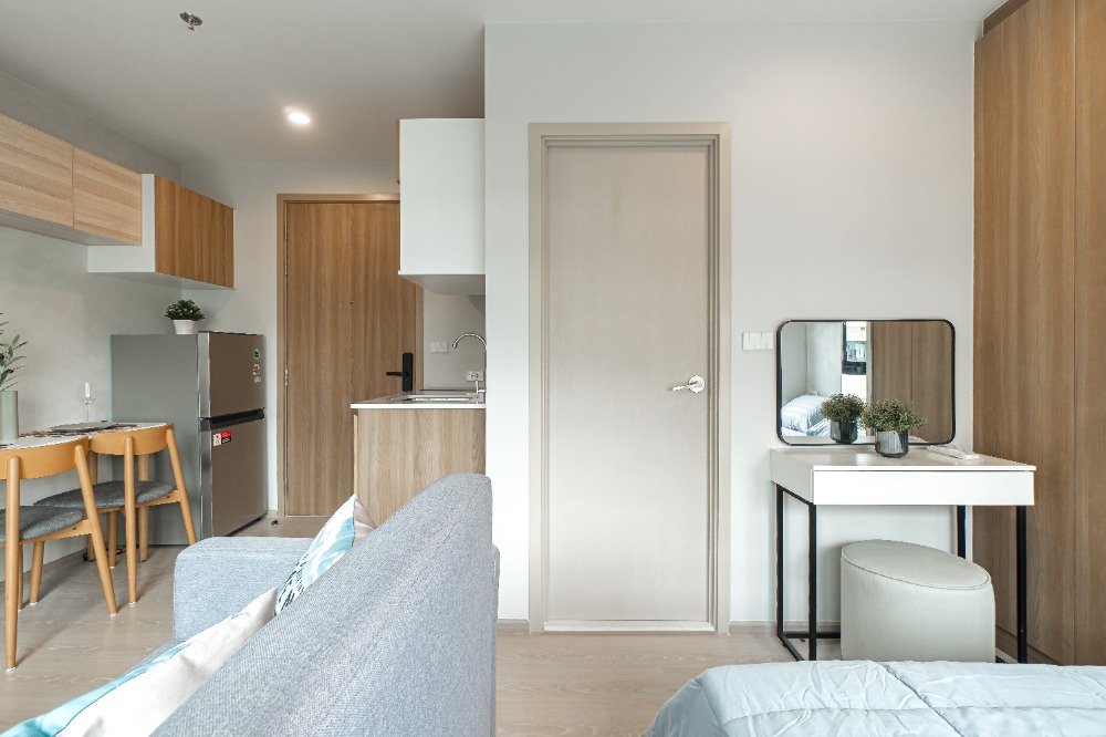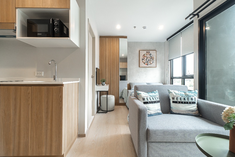 Condo for rent, Nue Connex Condo, Don Mueang near Rangsit University 10 minutes, Future Park Rangsit 10 minutes, Bangkok University 15 minutes Condo with many common areas and the most beautiful in the Don Mueang-Rangsit area Studio room, size 22 sq m, on the 3rd floor, Building B The room is attached to a neighbor on one side only, the other side is a fire escape The balcony is very private, cant see the next room Furniture and electrical appliances as shown in the picture Ready to move in today, just grab your bags and move in All photos are taken from the actual room, not a sample room Rent 10,000 baht, minimum contract 1 year 1 month advance payment, 2 months security deposit Details Central area Swimming pool on G floor Pool Lounge Wash & Cafe’ Kids Club Fitness room Rock climbing wall Training room & Sky yoga Golf Simulator Theater & Karaoke and music practice room Co-Working & Library Bar & Co-Kitchen Playroom Game Room Co-Salon