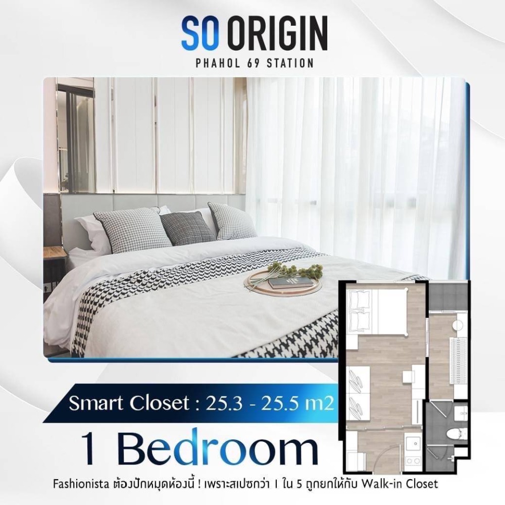 Selling down payment at a loss, 1 bed, beautiful room, high floor, SO Origin Phahol 69 Station, on the main road, on BTS Sai Yud, most special price New style condo, hotel-like service, the only one o