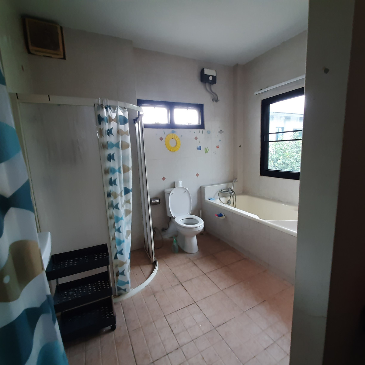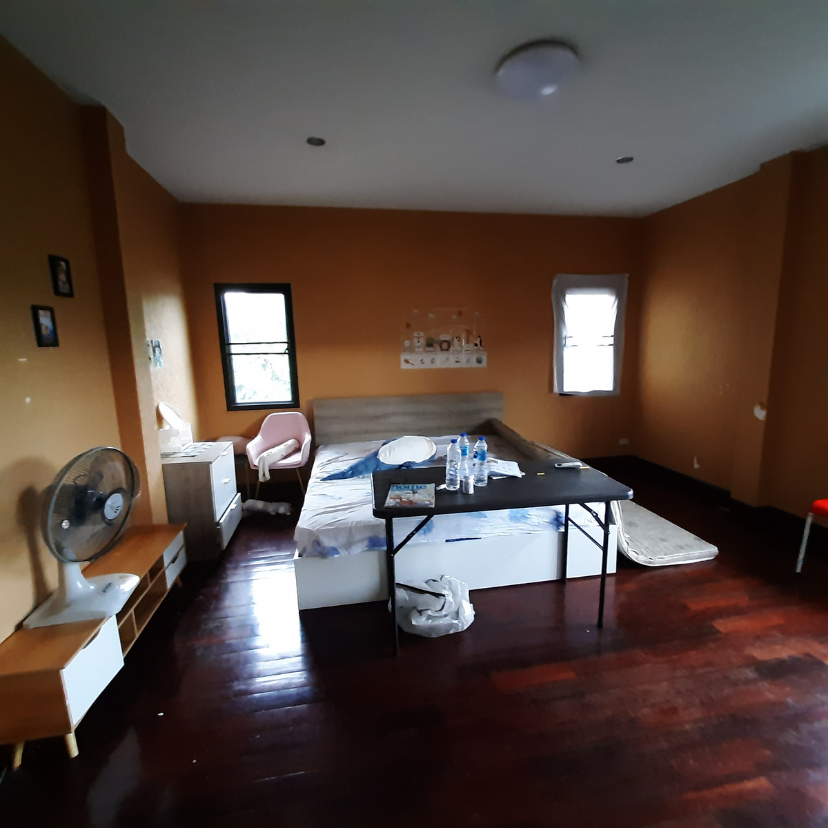 Single house outside the village, 3 bedrooms, 3 bathrooms, usable area 200 sq m., high ceiling, parquet floors throughout the house, built in 2006, large yard, can park several cars, suitable for a nursery, home office, 28 m wide frontage on the road, next to 7 Eleven, quiet and safe (https://www.facebook.com/renthomeoofficebangnatrad)