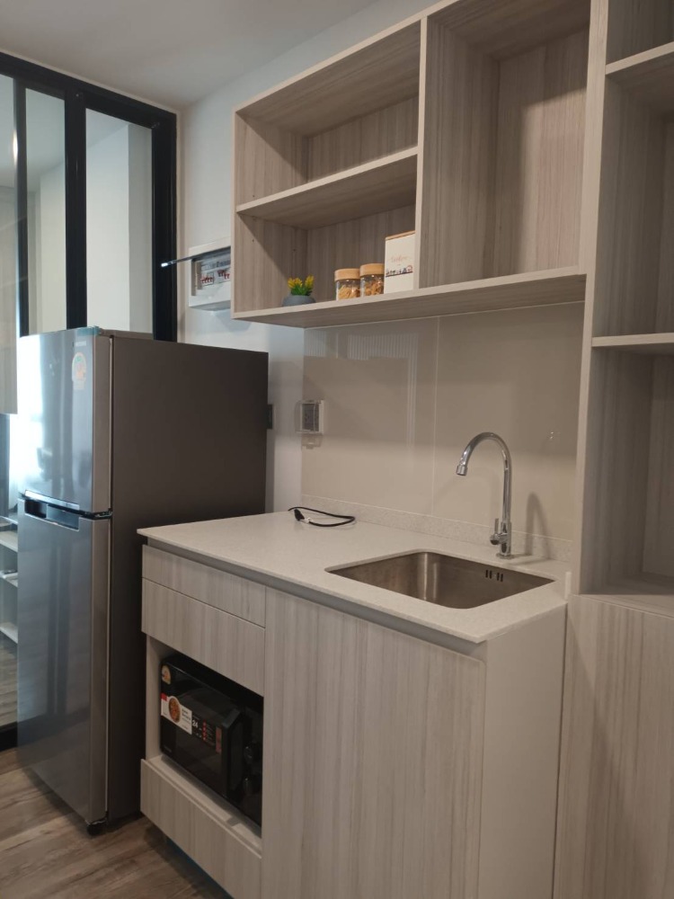 Details in the room: -Smart lock door -Bluetooth sound system -TV -5-foot bed -Air conditioner -Refrigerator -Microwave -Water heater -Curtains -Sofa -Washing machine -Work desk Rental price 9,800 baht/month (1 year lease) 2-month room deposit 1-month first months rent Total payment for 3 months, ready to move in Contact for more information at ☎ Contact number (P.Ai) Line: ay_c90 (Add Line to make an appointment to view the room)