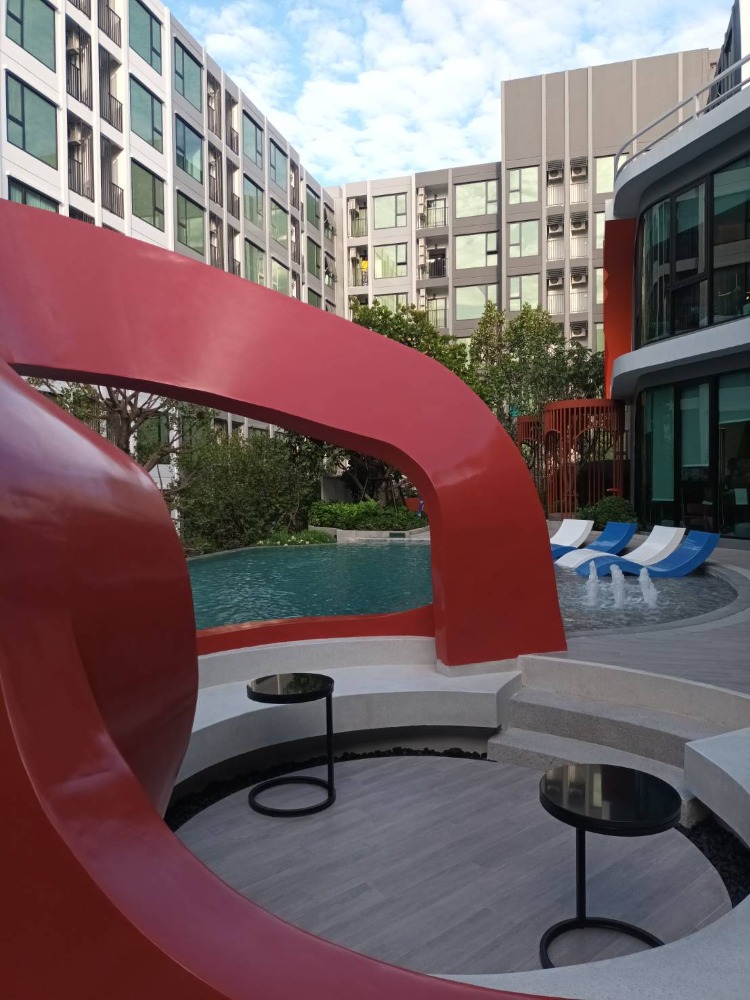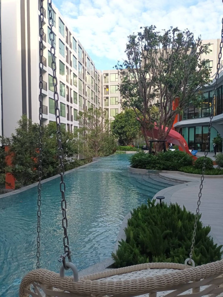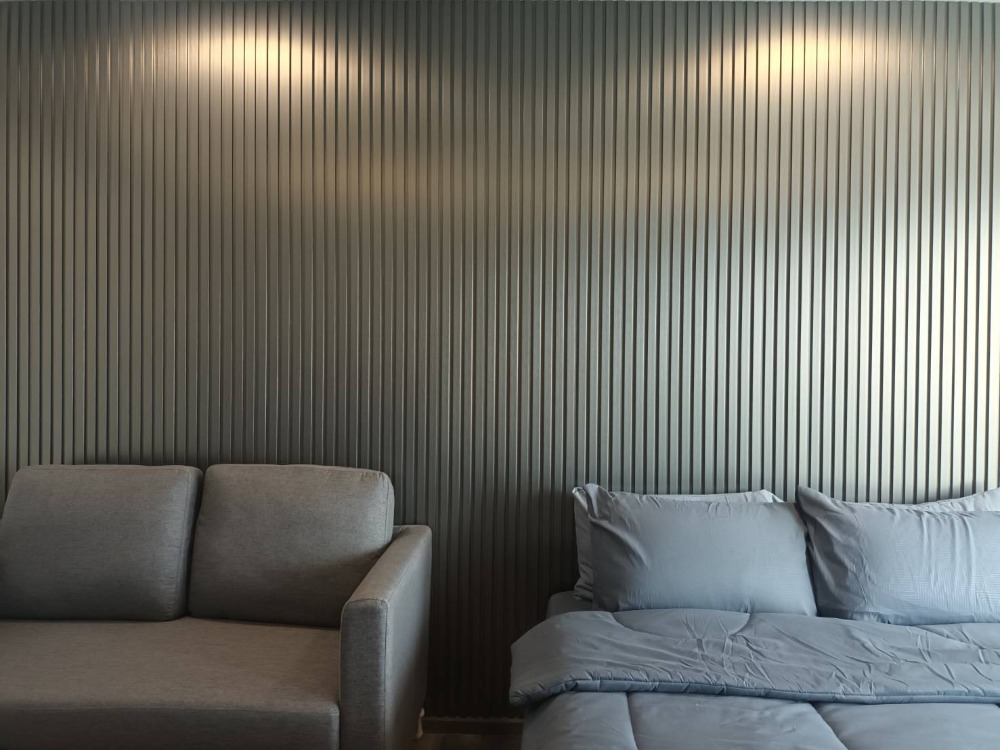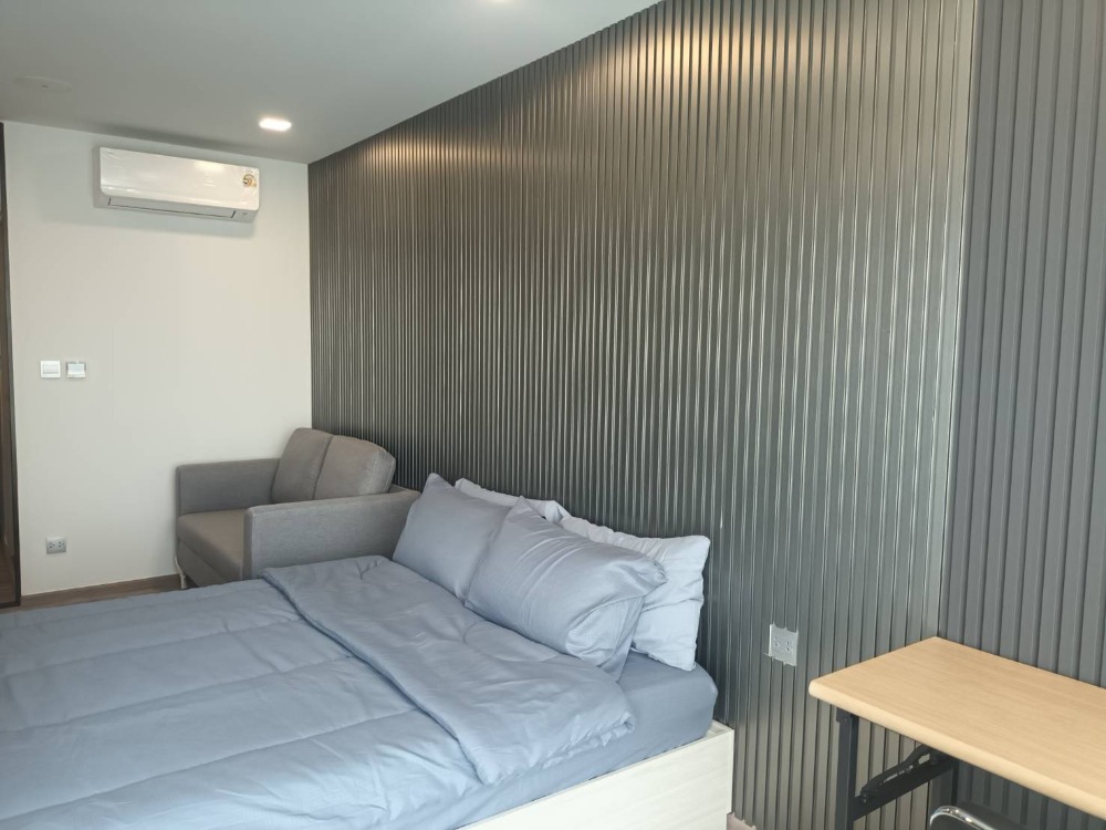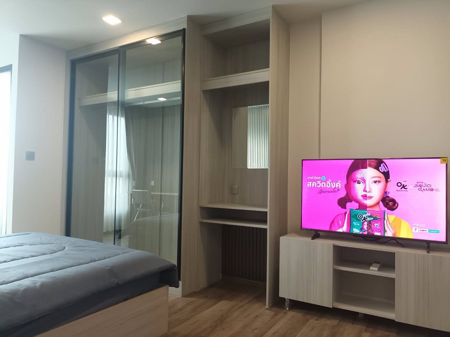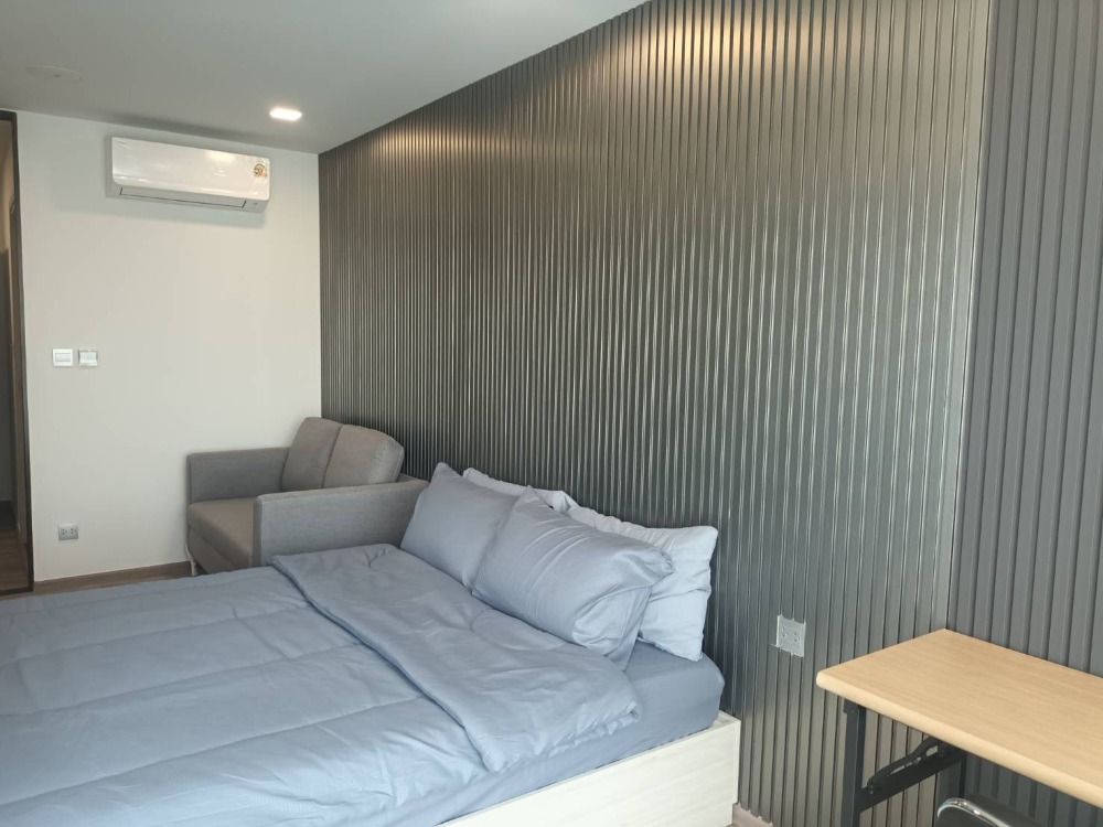 Details in the room: -Smart lock door -Bluetooth sound system -TV -5-foot bed -Air conditioner -Refrigerator -Microwave -Water heater -Curtains -Sofa -Washing machine -Work desk Rental price 9,800 bah
