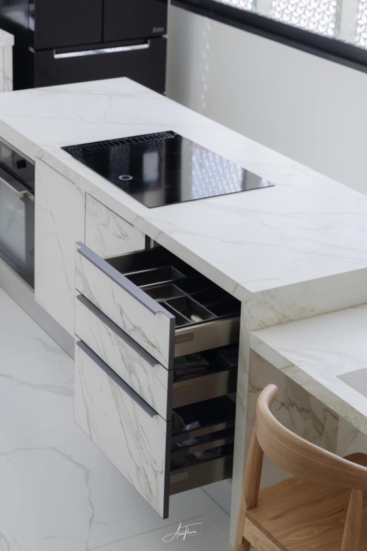 For Rent ❗️Newly Built House in the Heart of Ekkamai Living Area: 360+ SQM with Elevator 🏢3 Bedrooms, 4 Bathrooms, 3 Parking Spaces ?) Walk-in Closet | Western Kitchen | Thai Kitchen | ?) Cat Friendly