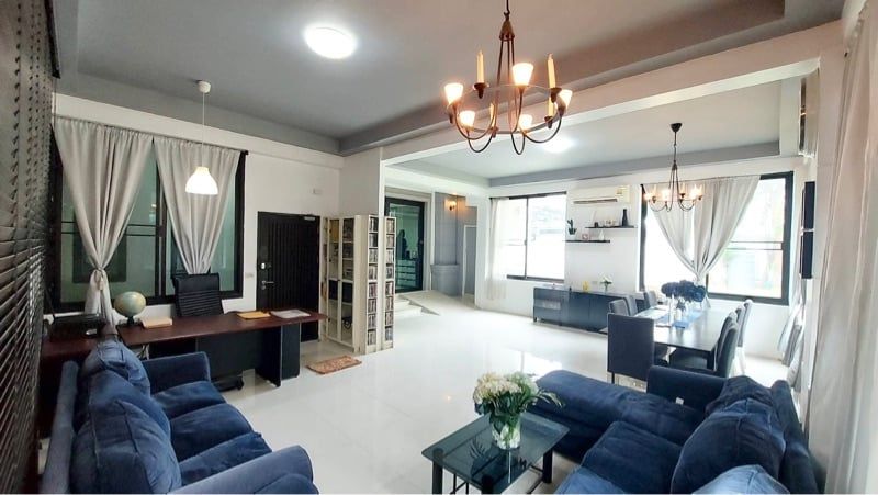 176 sq m, 6 bedrooms, 5 bathrooms, 3-storey detached house, Ram Intra 65, 800 m into the alley, near the Pink Line electric train, Km. 6 Selling a 3-storey detached house, Ram Intra 65-67, at the entrance to the alley. (Electric train) Pink Line, Km. 6, 800 m into the alley Corner house, parking for 12 cars 6 bedrooms, 4 bathrooms, large living room, 2 zones The front and back doors have 2 remotes and a security system in every door Sound warning system for help Garden with sprinkler system for watering via mobile phone/set timer, complete **** Transfer fee 50:50, income tax and stamp duty The seller has issued it. Please feel free to contact us. Ms. Saowalak o Contact number65 ( Telephone number T e l . 082 two eight two two seven six five ) Add Line: @saowaluk.an (add @ in front) Website: www.livinginsider.com/public_profile/1/CIbbIj.html Page: www.facebook.com/teededasungha **Proceed with the loan application. Take care throughout the sale **Accepting sales, rentals of condos, houses, land and all types of real estate Location: Soi Ram Intra 65, Tha Raeng Subdistrict, Bang Khen District, Bangkok 10220 Size: 176 sq m, usable area approximately 350 sq m Price: 15,800,000 baht