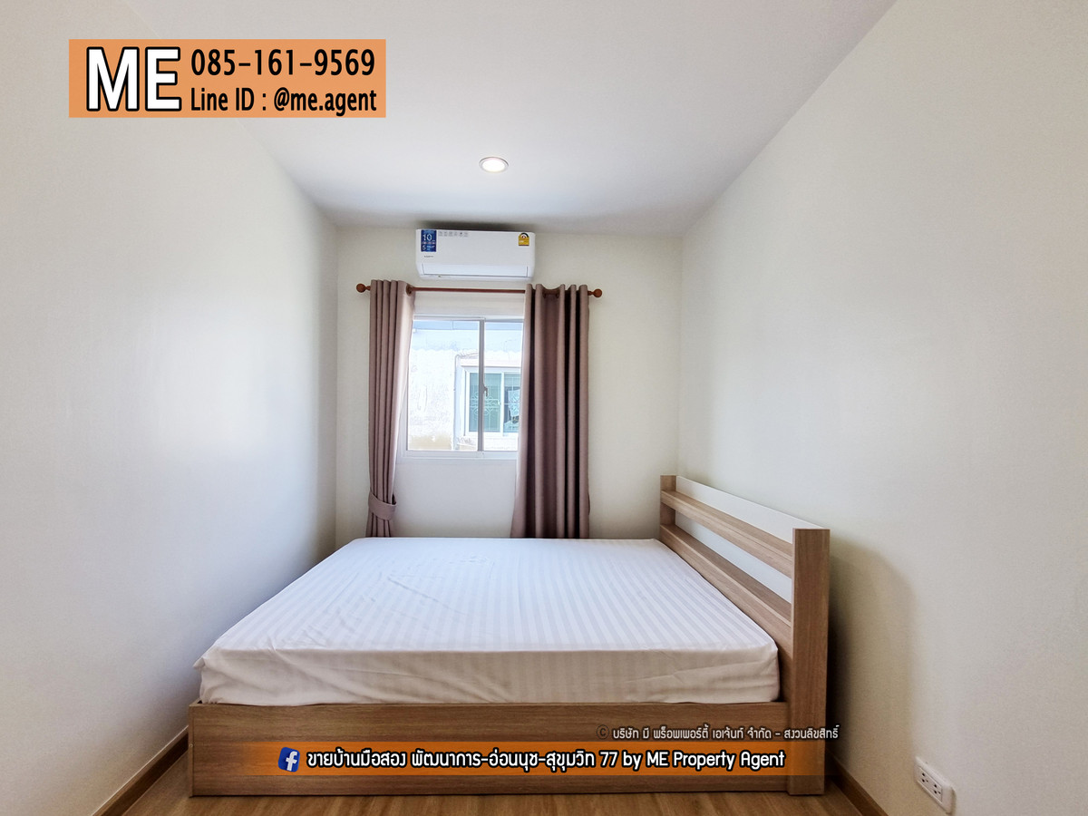 Good location, can enter and exit in many ways, including Soi On Nut 39, Srinakarin 24, Soi Phatthanakan 30,32,38,44 . - Area 19.2 sq m., usable area 135 sq m. -3 bedrooms, 2 bathrooms, 1 kitchen-2 parking spaces -3 air conditioners -with furniture . Price 4.39 million baht If interested, contact us at ME Property Agent Tel. Contact number K. Mook Tel. Contact number K. Oh Line ID : mook5164 Line ID : nerveo LINE : @me.agent IG : mepropertyagent [https://www.instagram.com/mepropertyagent?igsh=MWo0dmZhaGF2N3J5bw==] TIKTOK : meagent [https://www.tiktok.com/@meagent?is_from_webapp=1&sender_device=pc] YouTube : @meagent5131 [https://www.youtube.com/channel/UCdOL3eFLB4iIxpTuGJVRMpw] Follow and see beautiful houses on the ME page. Message via Inbox FB : Used house for sale Phatthanakan-On Nut-Sukhumvit 77 by ME Property Agent https://www.facebook.com/MEpropertyAgent .Amenities – Swimming pool size 15 x 5 meters – Fitness – Clubhouse – Security guard and CCTV 24 hrs. .Nearby places 1. Kasem Bundit University – 1.2 km. 2. Vibharam Hospital – 3.5 km. 3. Thanya Park – 4.0 km. 4. Airport Link Hua Mak – 3.5 km. 5. BTS On Nut – 5.5 km 6. Big C Extra On Nut – 5.0 km 7. Tesco Lotus On Nut – 5.5 km 8. Seacon Square – 7.5 km. 9. Paradise Park – 8.3 km. . #MEpropertyagent #ONEStopService #Secondhand house #Baan Phatthanakan #Baan On Nut #House ready to move in #Townhouse On Nut #Townhouse Pattanakarn #Single house ready to move in #Single house #The Palm #thepalm #Phatthanakan 38 #The Plant Elite #Northwest #Large detached house #near the skytrain #near the expressway #VilletteLite #VilletteLite #2-story townhouse