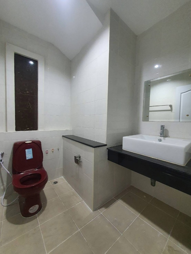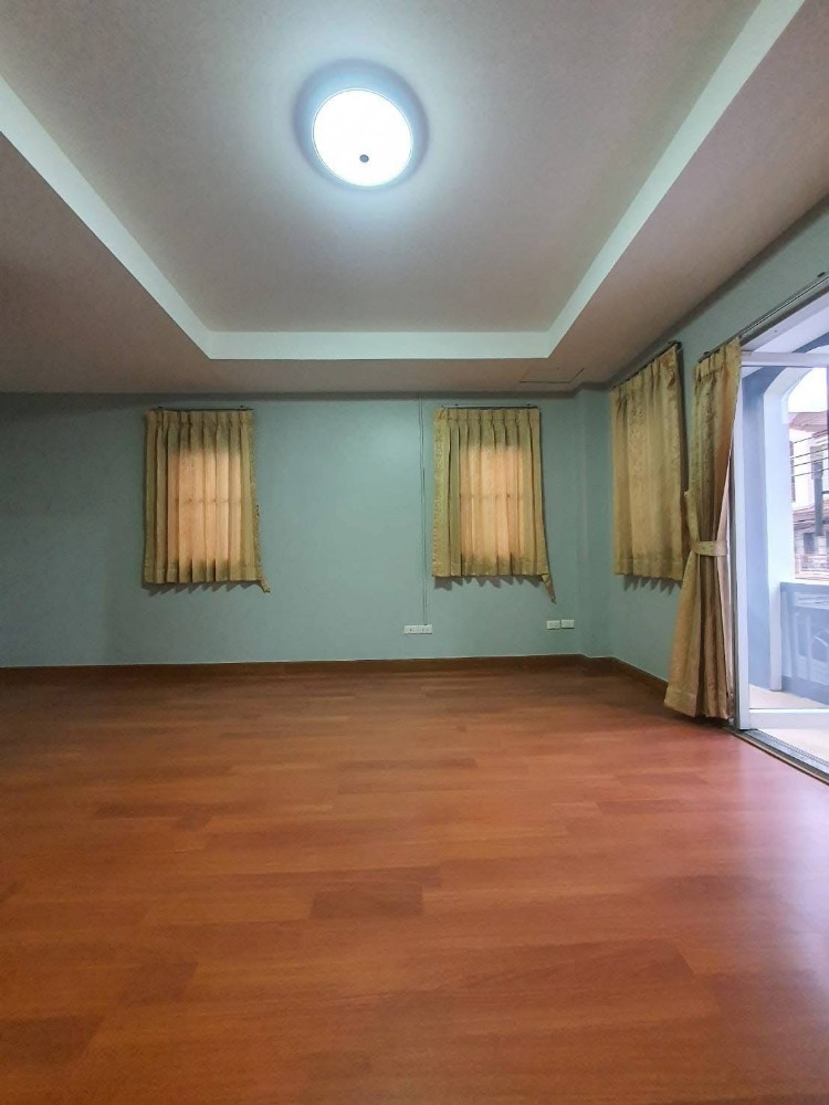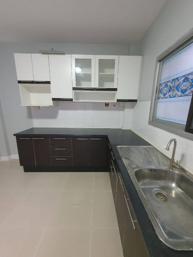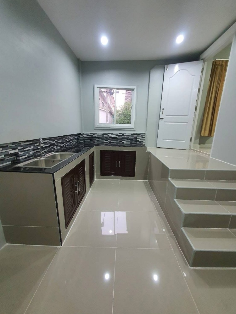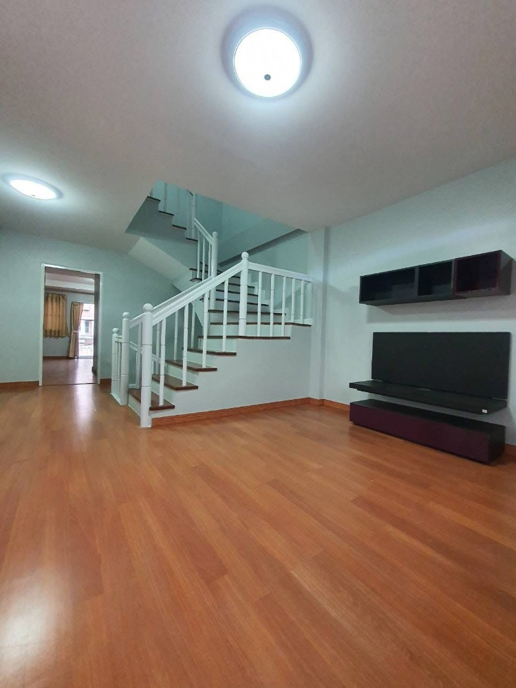 M696 3-storey townhouse for rent, Sukhumvit 77 Village, Soi On Nut 17 ................................ ▪️3 bedrooms, 3 bathrooms ▪️Living room, kitchen with 5 air conditioners Storage room ▪️Size 20 s
