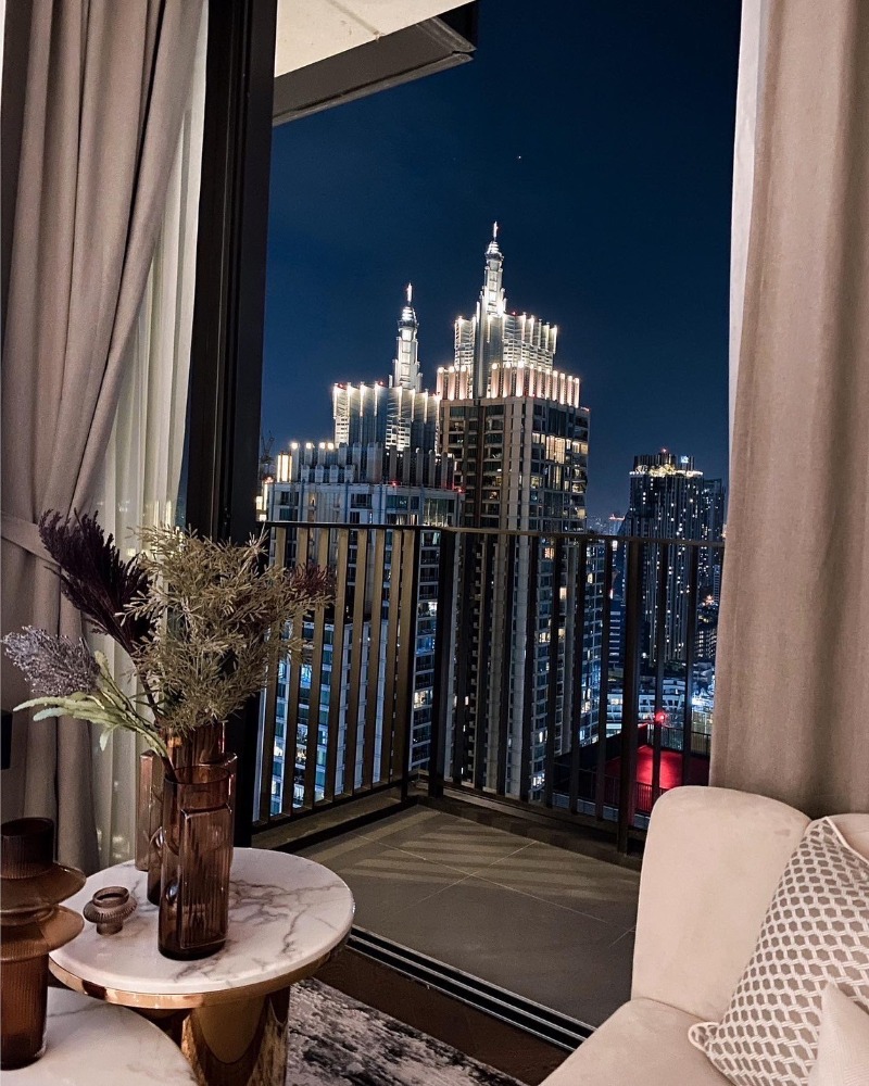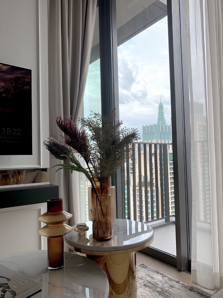 For rent 1 bedroom 44 sq.m. 28 Chidlom 28 Chidlom 1 bedroom 1 bathroom 25th floor, east side Room size 44 sq.m. with furniture in the room, bed, wardrobe (built-in), sofa, dining table , kitchen count