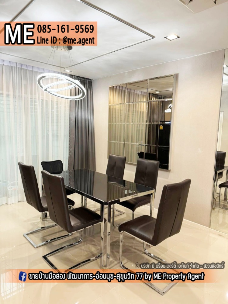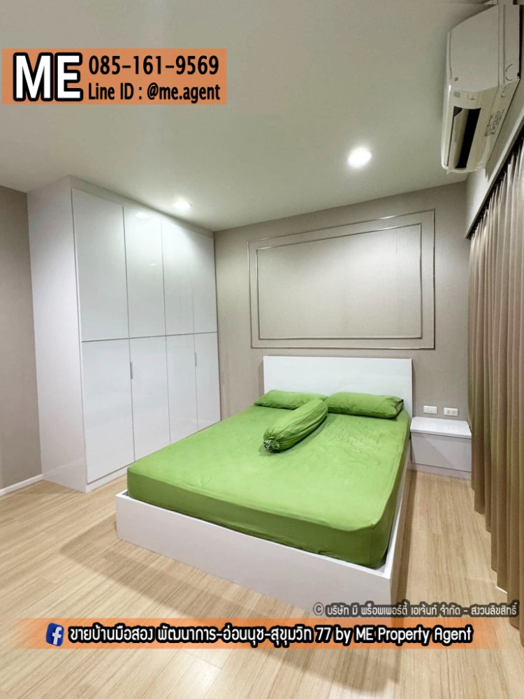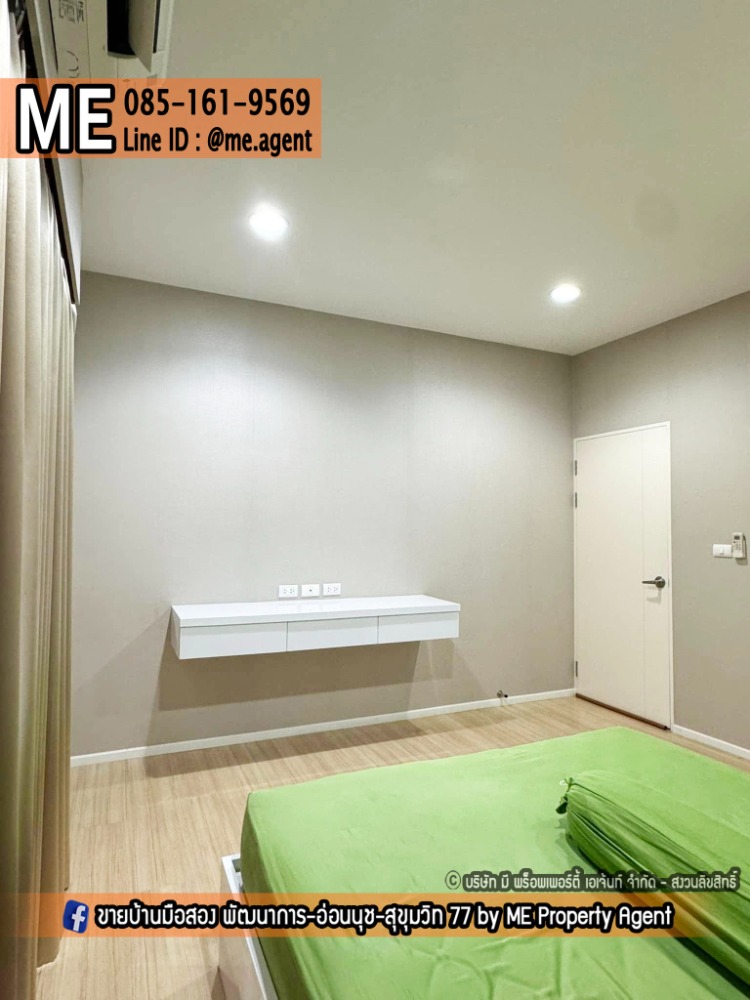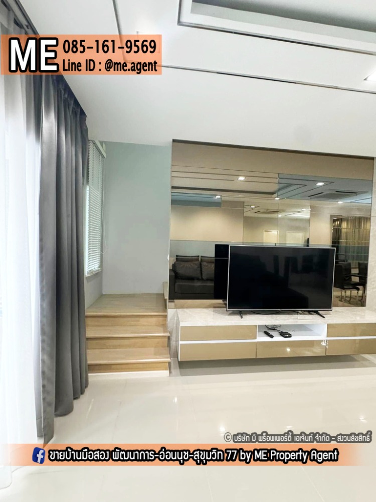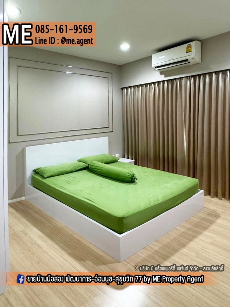 For sale / rent 3-storey townhouse, Baan Klang Muang Village, Sukhumvit 77, On Nut 17, only 500 meters to Lotus Express, ready to move in, prime location near Ekkamai - Thonglor - Sukhumvit. Call Contact number (TK14-20) . Super tone-on-tone decoration, walk only 500 meters to Lotus Express Good location near BTS On Nut station - Near Sukhumvit 50 Expressway - Sukhumvit 62 - Ram Intra - At Narong . - Area 20 sq m, usable area 178 sq m - 3 bedrooms, 3 bathrooms, 1 kitchen - 2 living rooms (1st, 2nd floor) - 2 parking spaces - 5 air conditioners - Furniture: 2 sofas / dining table and chair set - Electrical appliances: 2 TVs / washing machine / microwave / refrigerator . Price 7.29 million baht >>Transfer fee 50/50<< Rental 40,000 baht / month >> Minimum contract 1 year << . Interested, contact us at ME Property Agent Tel: Contact number (K.Muk) 📲 LINE: @me.agent 📸 Instagram: mepropertyagent 🎵 TikTok: meagent 🎥 YouTube: @meagent5131 📘 Facebook: Selling second-hand houses Phatthanakan-On Nut-Sukhumvit 77 by ME Property Agent . Common area - Large public park - Playground - CCTV cameras - Access Card Control - Electrical wiring system with poles and cables According to the standards of the Metropolitan Electricity Authority - Water supply main system According to the standards of the Metropolitan Waterworks Authority - 24-hour security system . Nearby places 1. Big C On Nut 2. Lotus Express 3. Mini Big C 4. MaxValu 5. Seacon Square 6. Paradise Park 7. Train Market #MEpropertyagent #ONEStopService #SecondhandHouse #BaanKlangMuang #Sukhumvit77 #SoiOnNut17 #Pattanakarn38 #ForRent #SaleAndRent #Cheap #NearOnNut #NearMe #NearOnNutStation #BTSOnNut #SeaconSquare #ParadisePark #3-StoreyTownhome #TownhomeOnNut