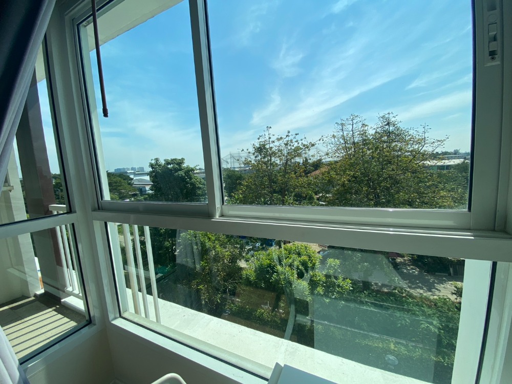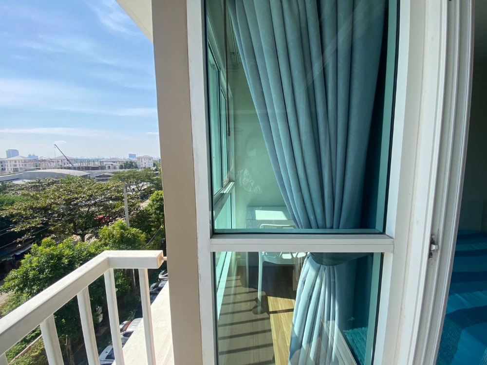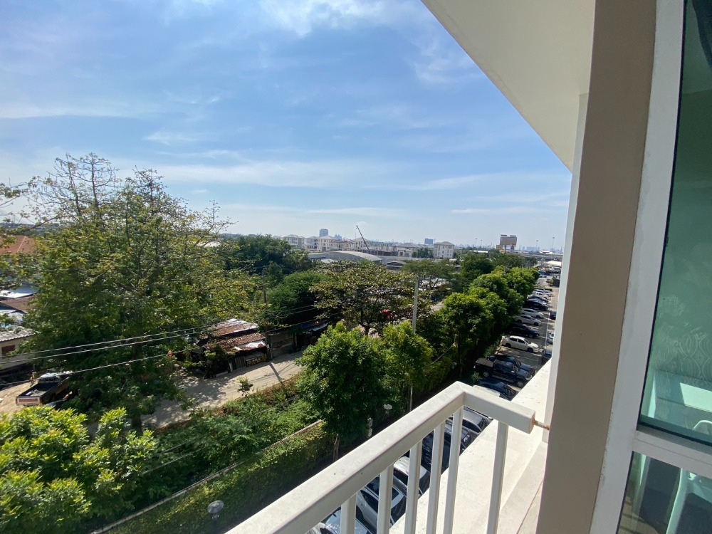 We Condo Good building 5th floor #Near the Pink Line #Next to the Ram Intra Expressway Market 33.3 square meters, southern-facing balcony, good wind, not sunny 1 bedroom, 1 bathroom, 1 living room, separate kitchen Spacious master bedroom with work desk Wide balcony 2 air conditioners, refrigerator, electric stove, range hood Rent 10,000.- per month #Near the Pink Line #Next to the Ram Intra Expressway Market Near Ekkamai-Ramintra Expressway Near the Pink Line Next to the Ram Intra Expressway Market