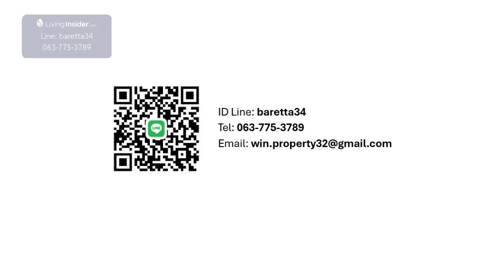 Project name: Baan Peang Ploen Project owner: Sansiri Public Company Limited Room type: Studio, Building B, 8th floor Area: 30.06 sq.m., Fully Furnished Common area/facilities: Swimming pool, fitness, recreational area, parking lot, garden Security system: CCTV, 24-hour security guards, separate entrance and exit for each building Highlights: The room is in good condition, not exposed to sunlight but has light, located on the quiet side, suitable for relaxation or for renting out. The room is fully furnished and ready to move in **Near Air Space Restaurant, Cicada Market, Tamarind Market (about 7-minute drive, 2.7 km), Bluport shopping mall (about 10-minute drive, 5.1 km), 470 meters from the sea Interested, please contact Inbox or Line id: baretta34